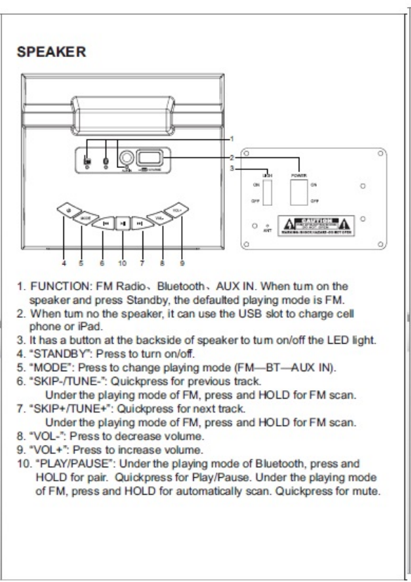 Dongguan Earson Audio Technology SBT1001 BLUETOOTH SPEAKER User Manual