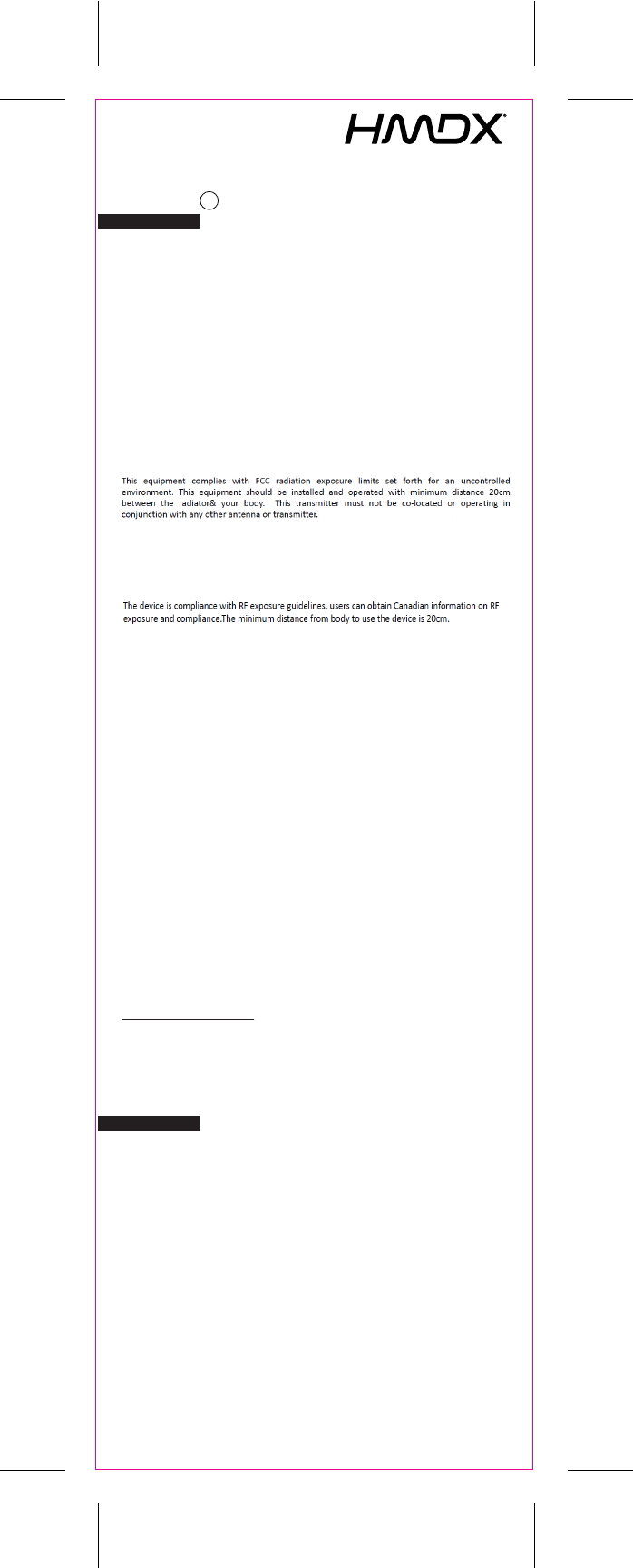 Remarque : Toute modification n’ayant pas été expressément approuvée par HMDX peut annuler