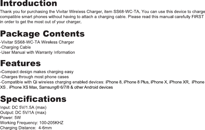 Dongguan Kechenda Electronic Technology Co., Ltd WIRELESS CHARGER KCD SS68 WC TA Manual V2 20190117