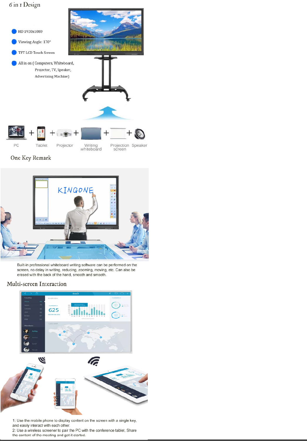 Dongguan Kingone Electronics Technology GQ-65A Touch Screen Smart Board User Manual Specification for Touch Screen Smart Board