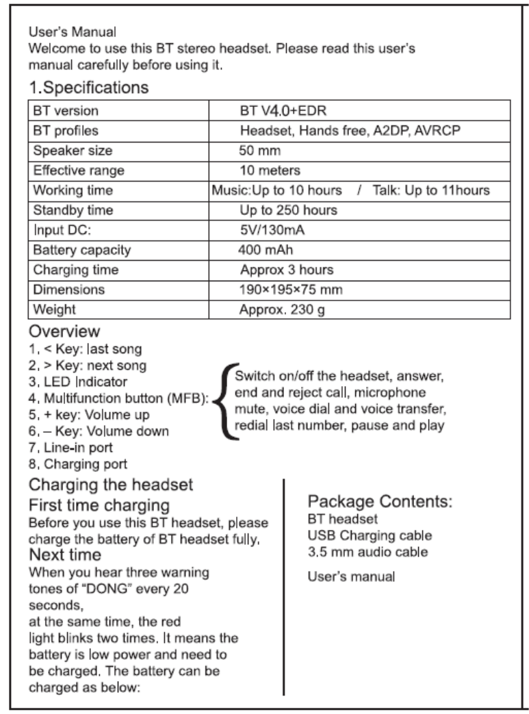 Dongguan Kotion Electronic Tech 350520 Bluetooth Headset User Manual