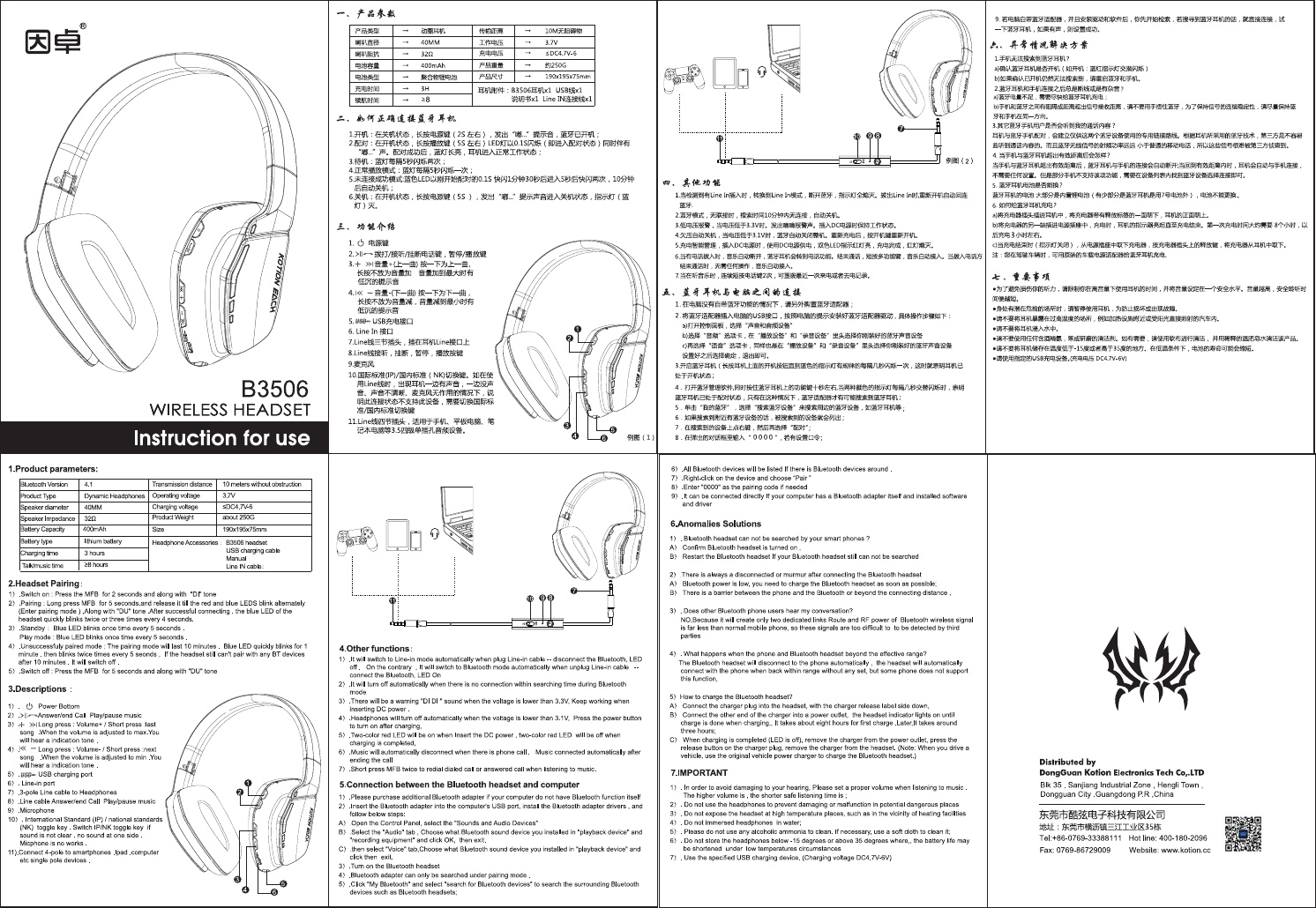 Dongguan Kotion Electronic Tech B3506 Bluetooth headset User Manual