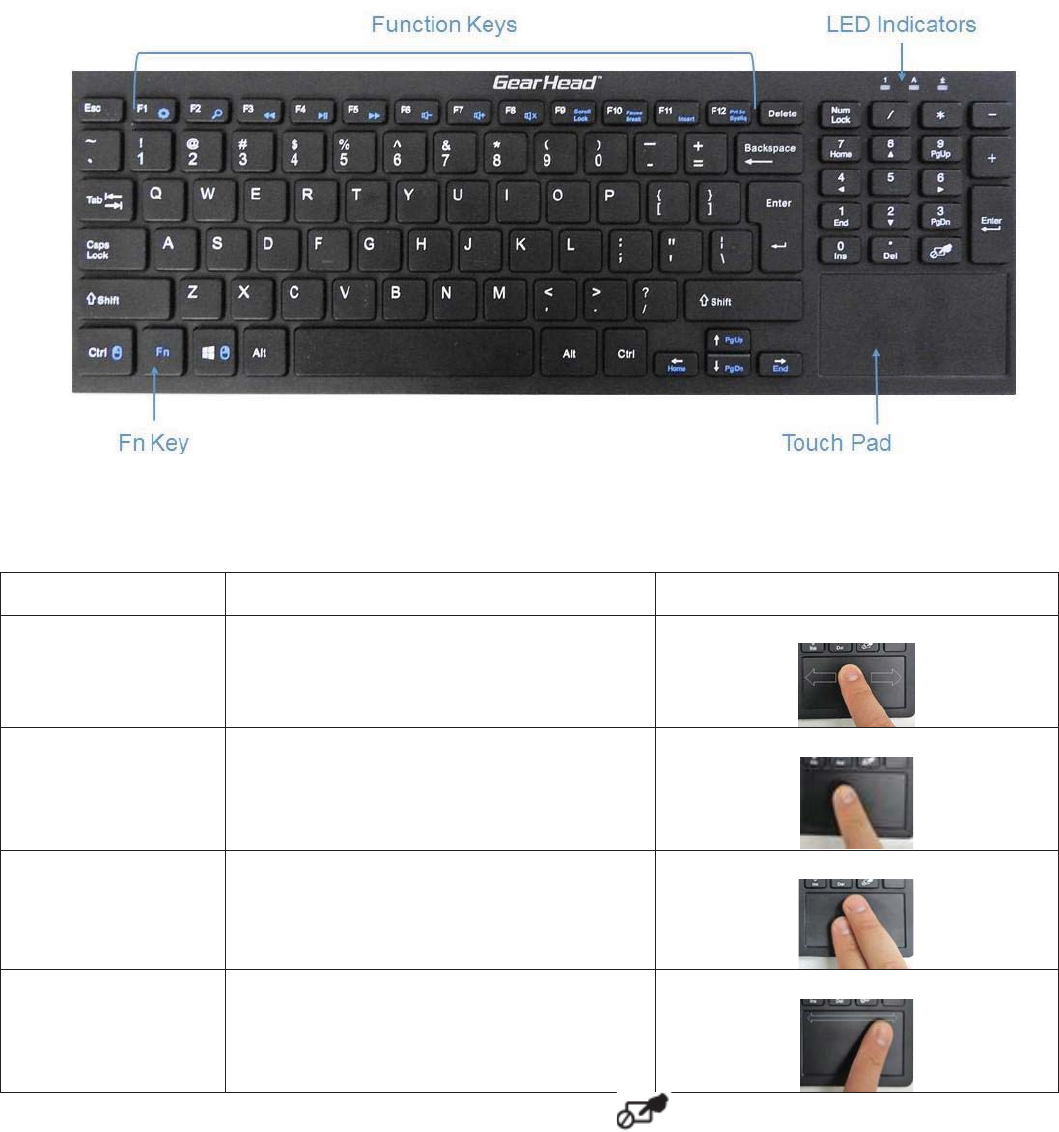 Touchpad Functionality:The built-in touchpad supports Multi-touch function which has been displayed