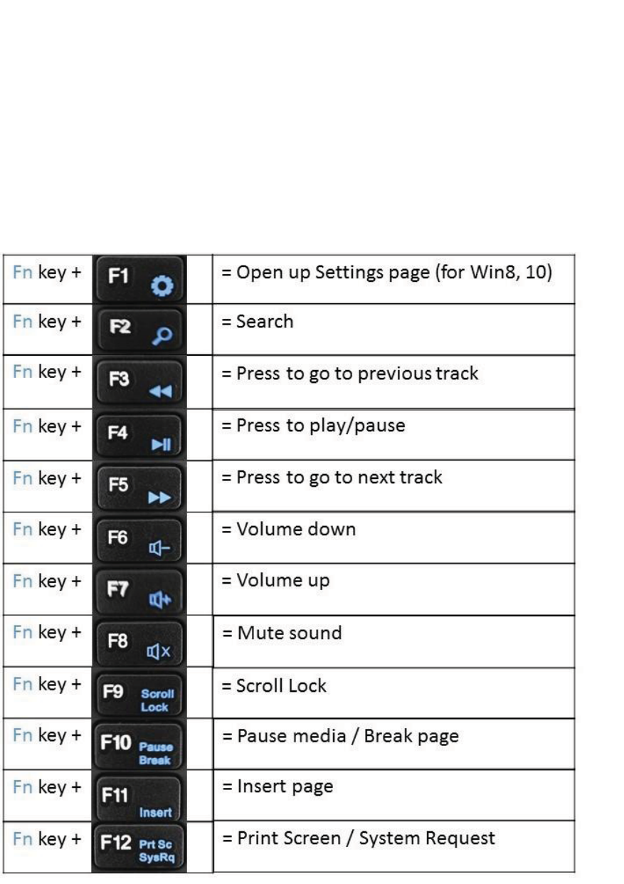 Function Keys:Function keys are combinations of the Fn key being pressed simultaneously with the F1