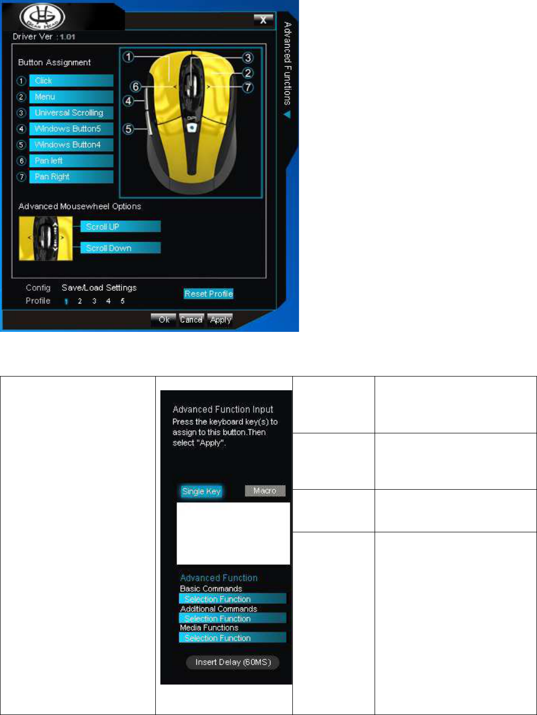 down menu: Click, Menu, Double-click, Advanced Functions, Scroll