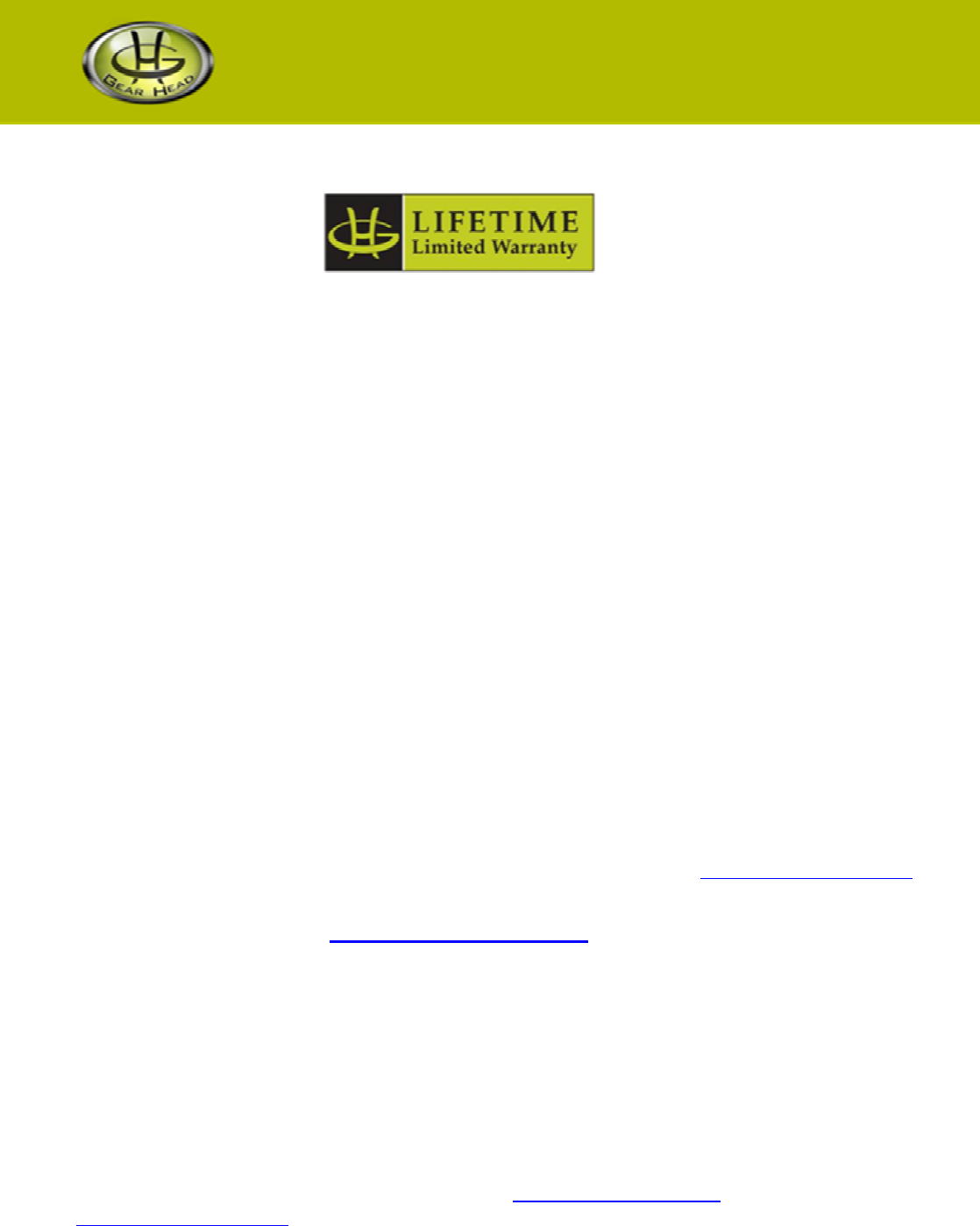workmanship for the reasonable lifetime of the product. If the product is defective, Gear Head,