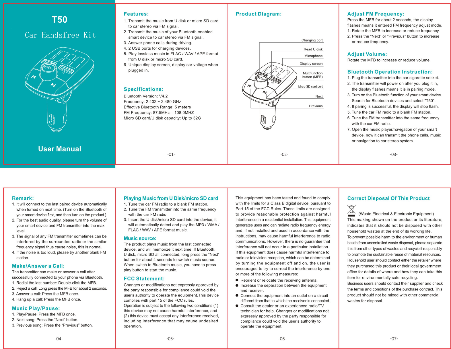 Dongguan Pinmi Electronic Technology Co., Ltd. Car Handsfree Kit 15 T50 UserMan