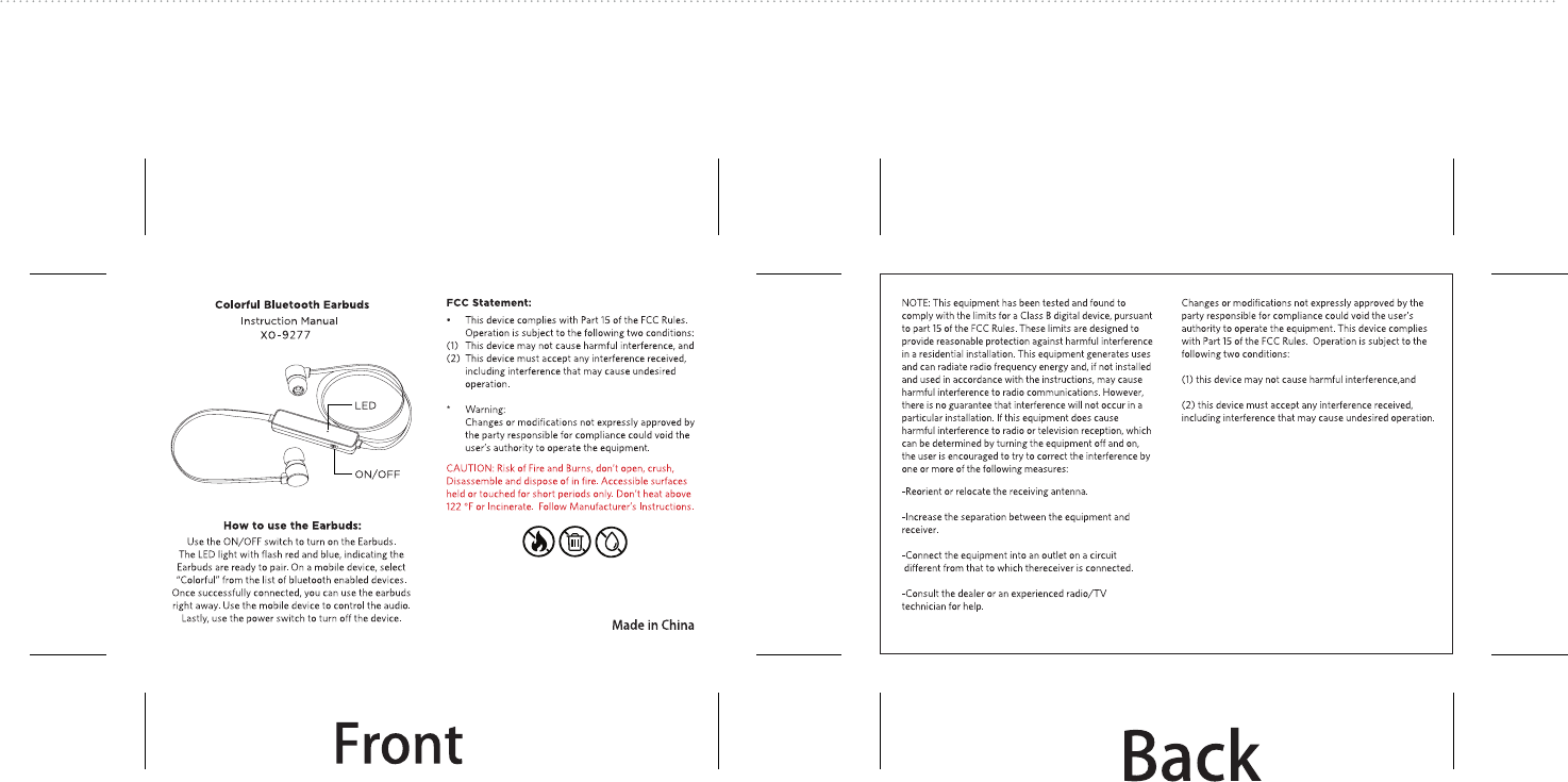 Dongguan Xing Yue Electronic XO-9277 Bluetooth Earbuds User Manual sm 3768 06 22 1
