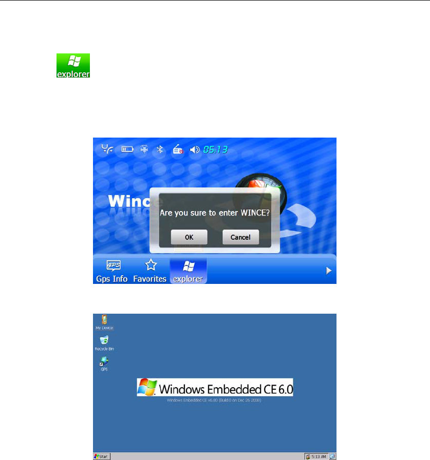 WINCE system, tap「OK」to enter the WINCE system as shown below while tap「Cancel」to return to the