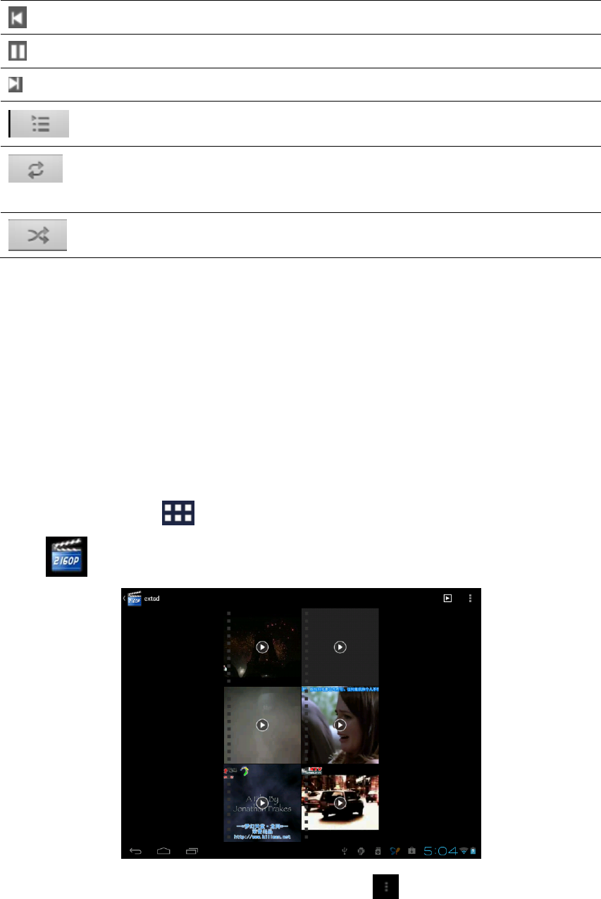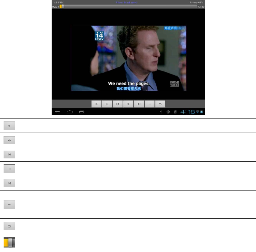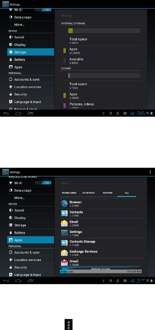 For example, when you are running the Music/Video Player/ Gallery, the storage
