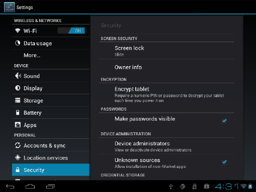 USB debugging: Check to permit debugging tools on a computer to communicate