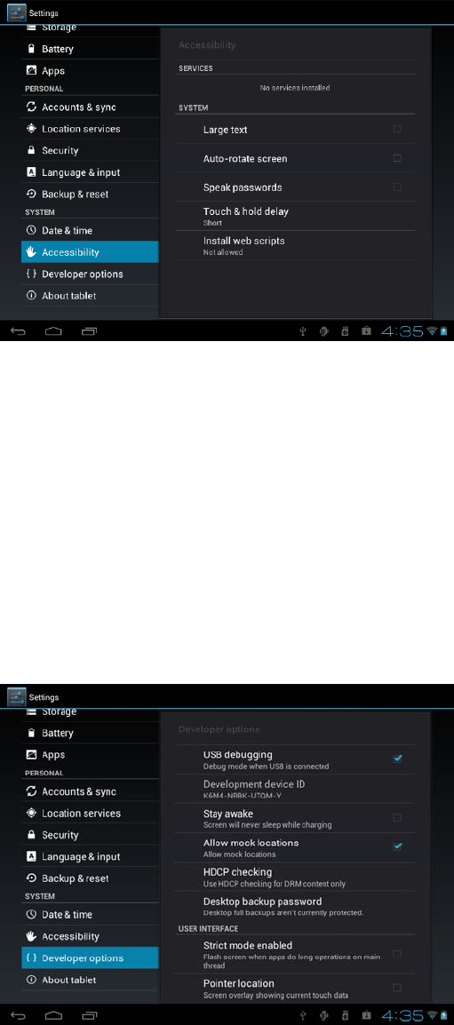 You can set the USB debugging mode, select screen stay awake and so on. And you