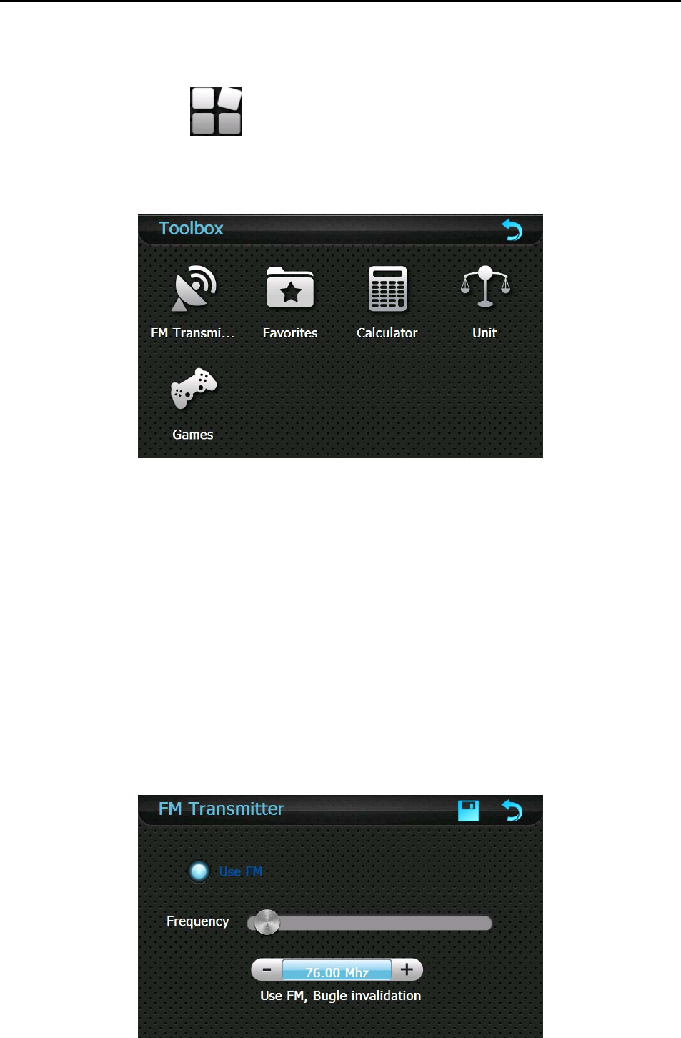 Dongguan Yuanfeng Technology PF100001 CONNECTED PND-FM FUNCTION User Manual PF10