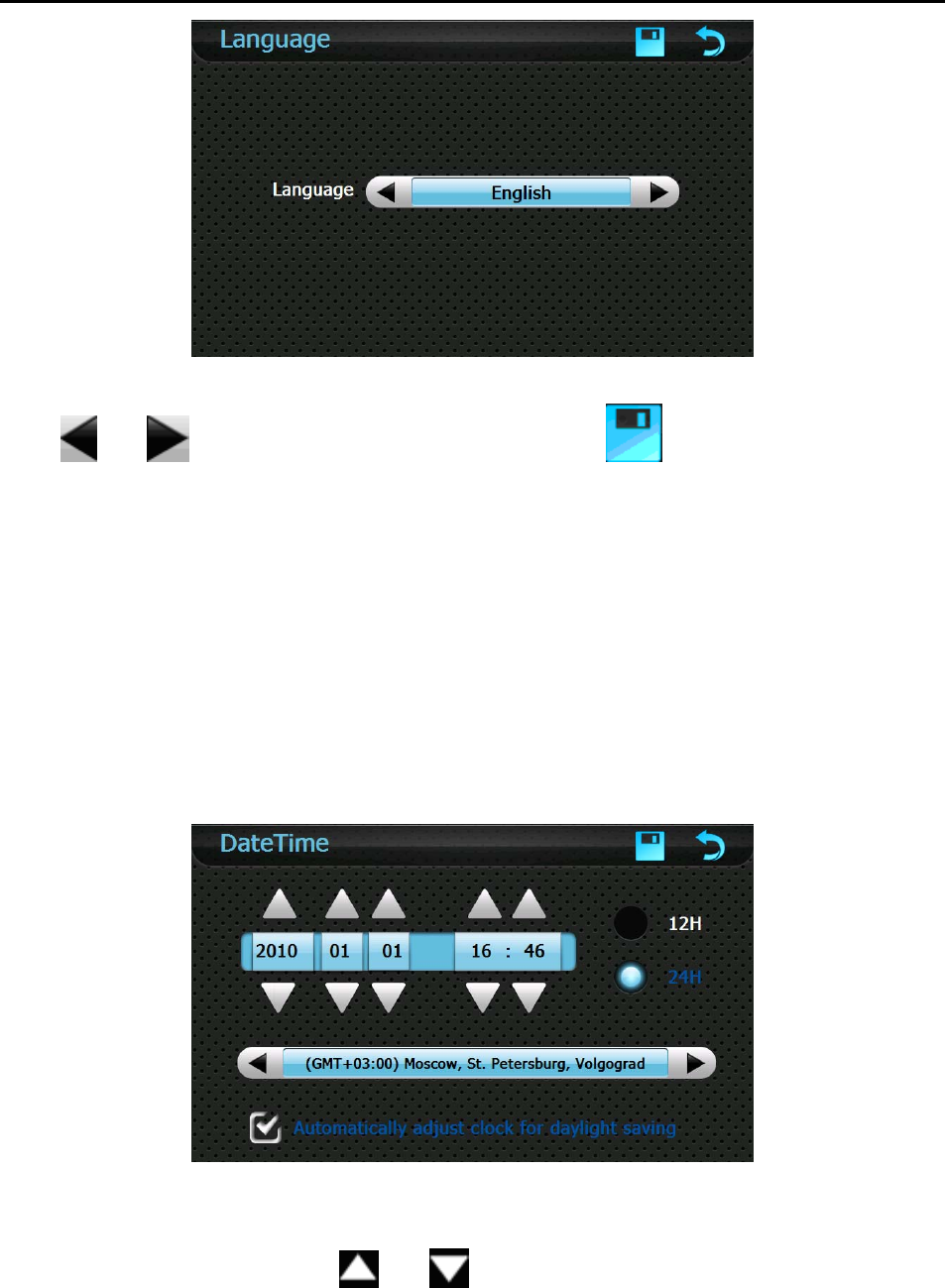 the navigator, for example, inputting addresses, changing settings or using