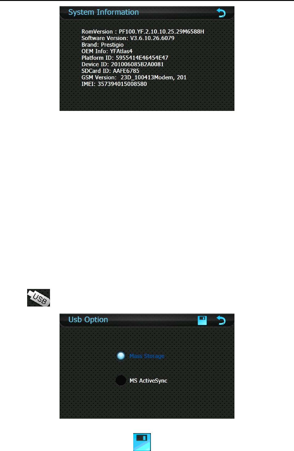 [Note] If MASS STORAGE is selected while the GPS navigator is connected with