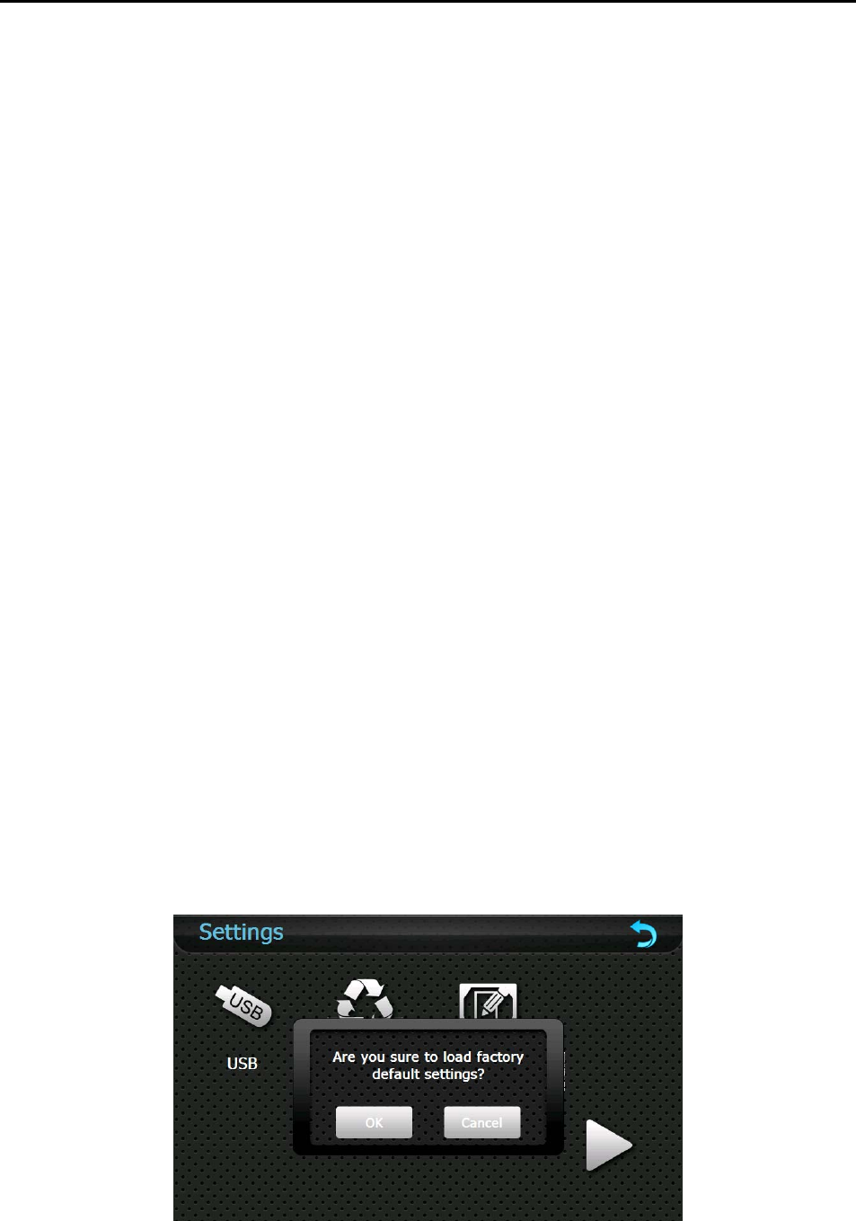 Tap 「OK」to restore the default setting or 「Cancel」to return to the setting