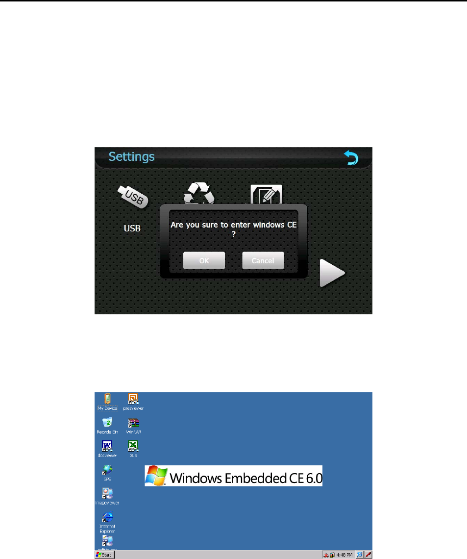 Tap「OK」to enter the WINCE system as shown below while tap「Cancel」to return