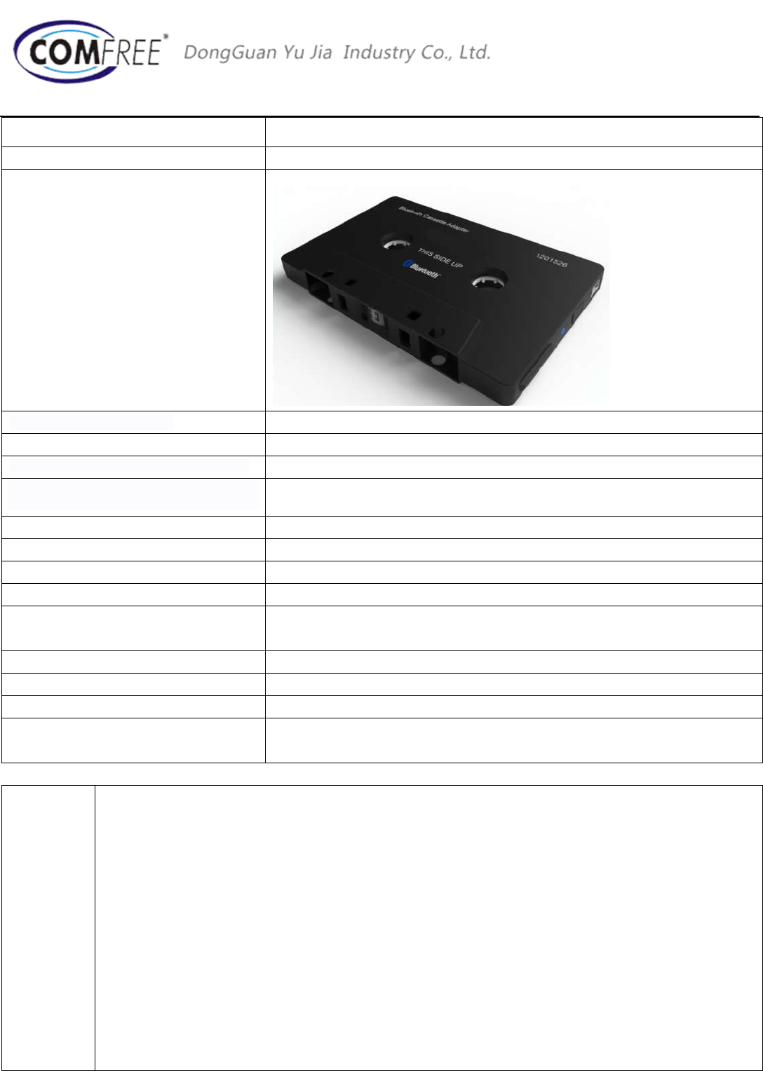 Dongguan Yujia Industry Co.,Ltd Wireless Stereo Bluetooth Cassette Adapter Model
