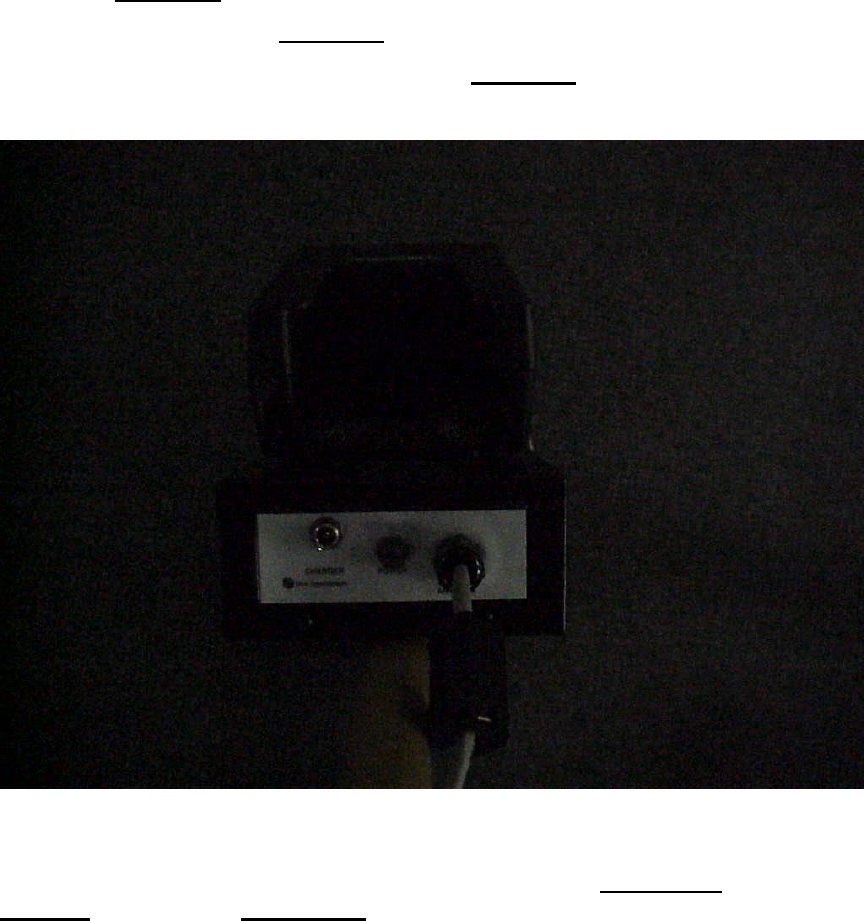 Looking at the rear of the interrogator, one can see the CHARGER jack, the