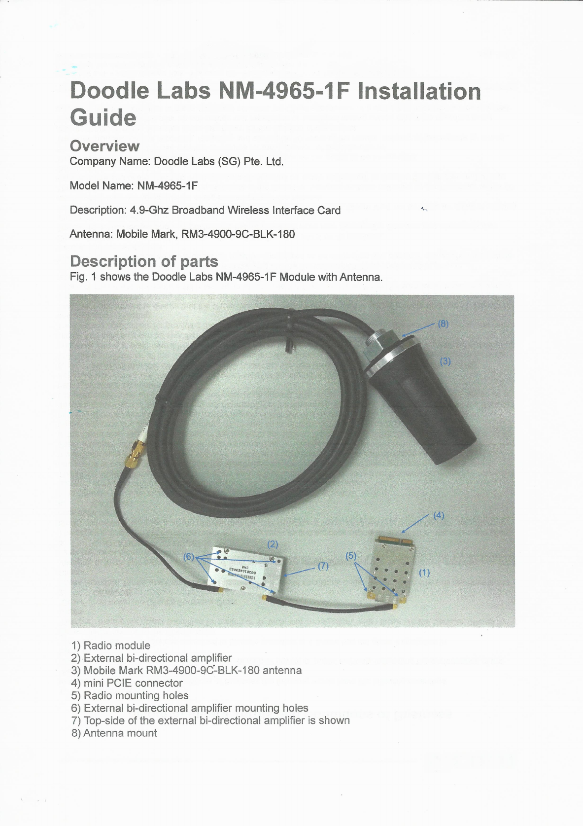 Doodle Labs NM-4965-1F 4.9 GHz Wireless Broadband Interface Card User Manual Installation Guide