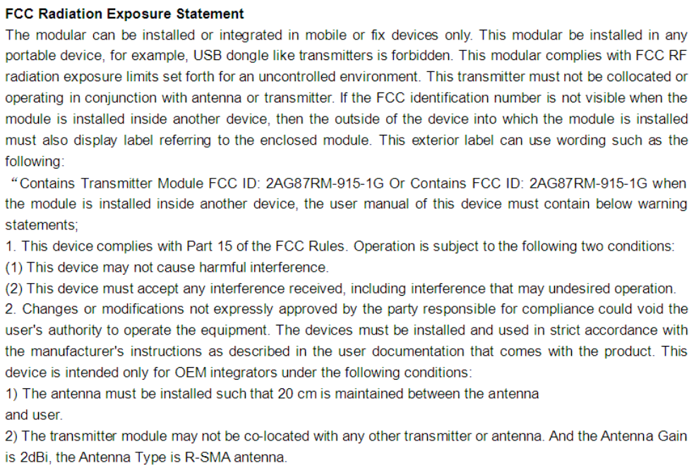 Model No. RM-915-1G (Rugged, Long Range applications