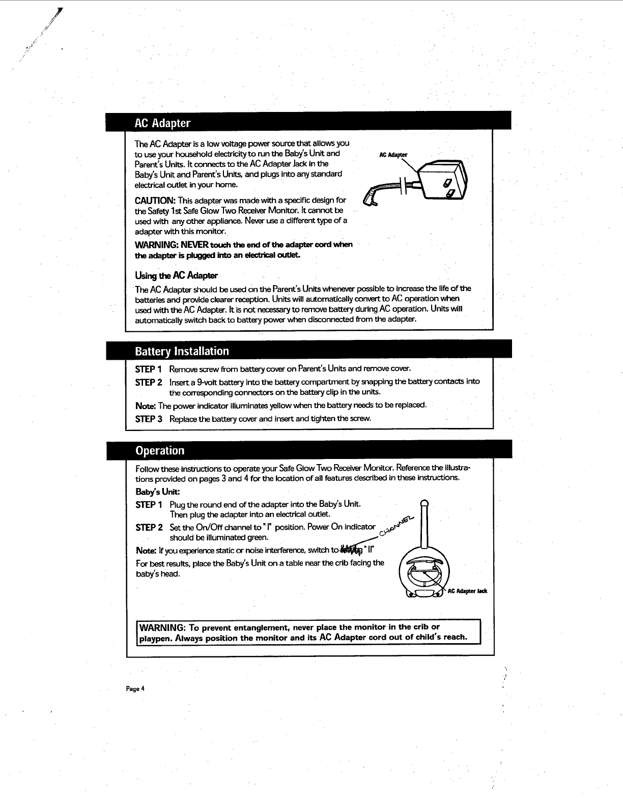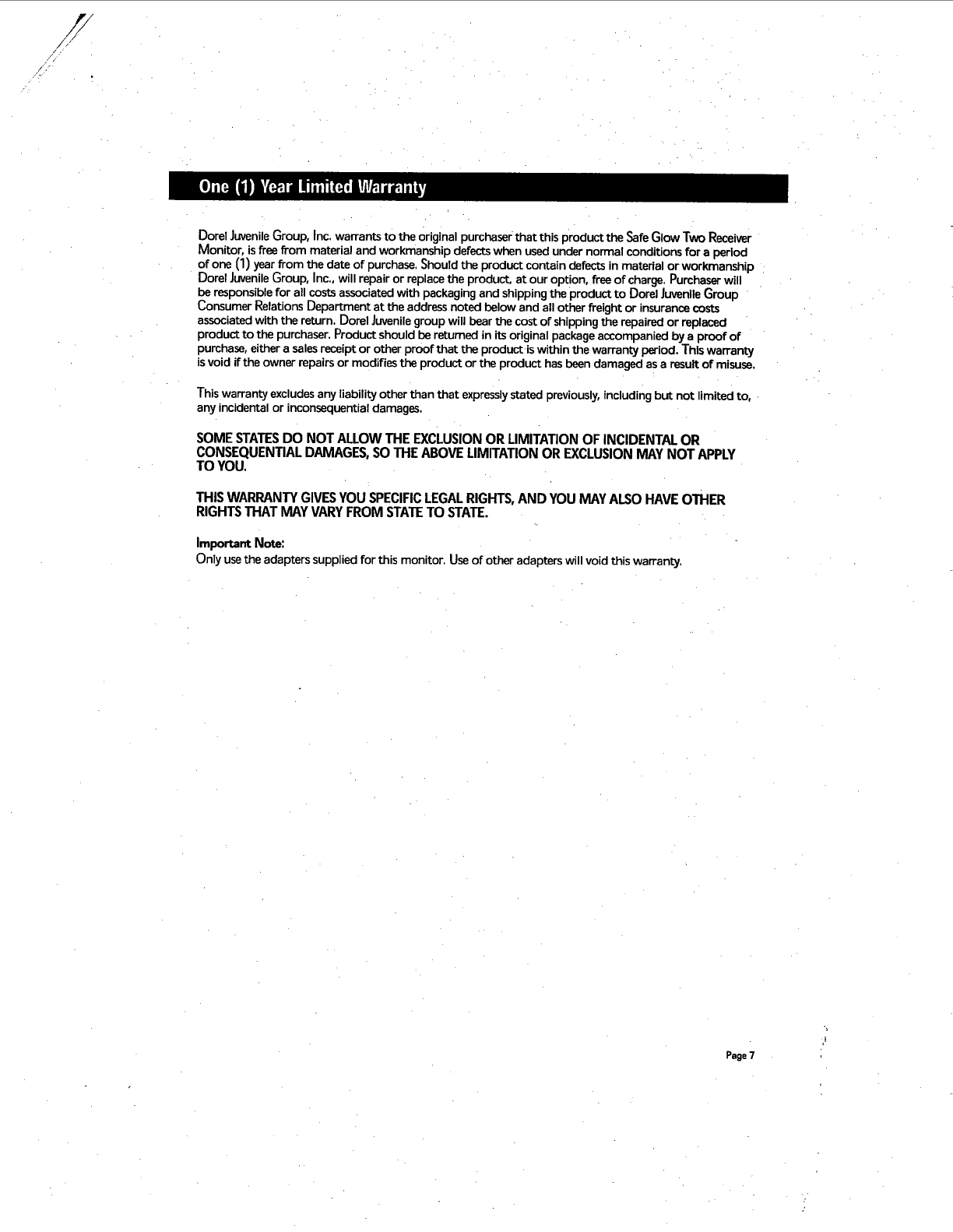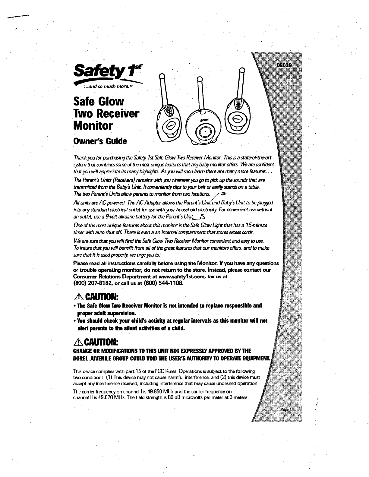 Dorel Juvenile Group 08039T Safe Glow 49 MHz Baby Monitor User Manual users manual