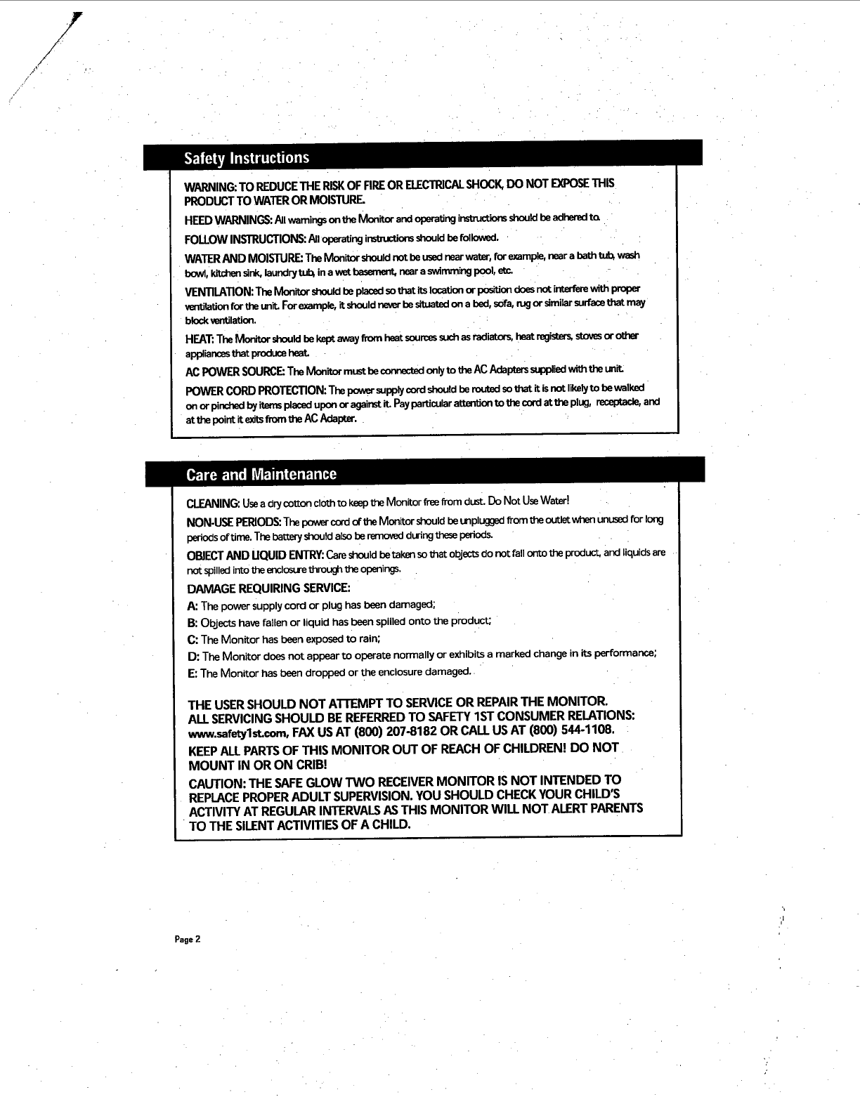 Dorel Juvenile Group Safe Glow 49 MHz Baby Monitor users manual