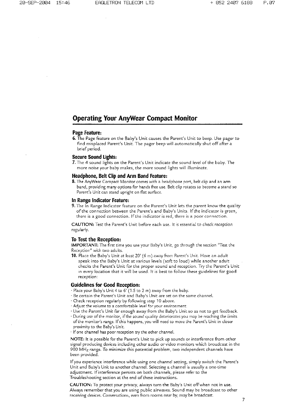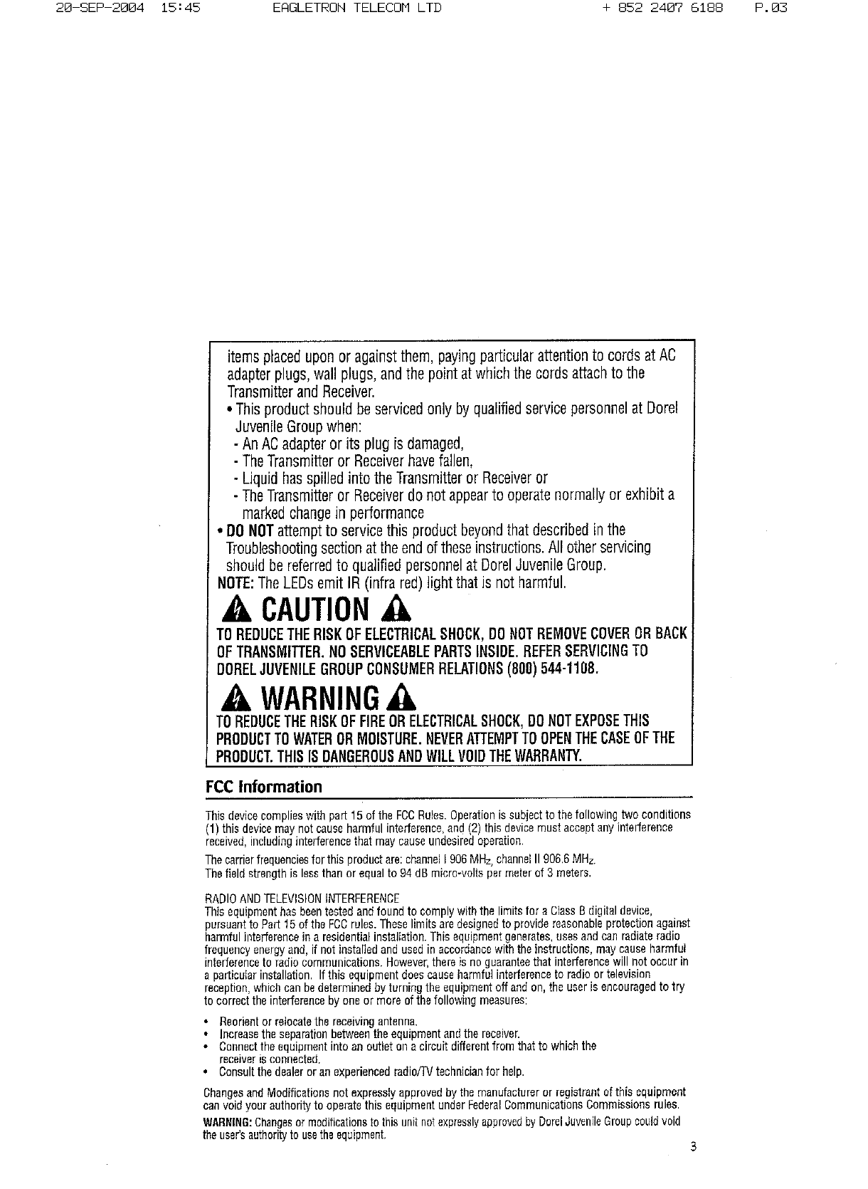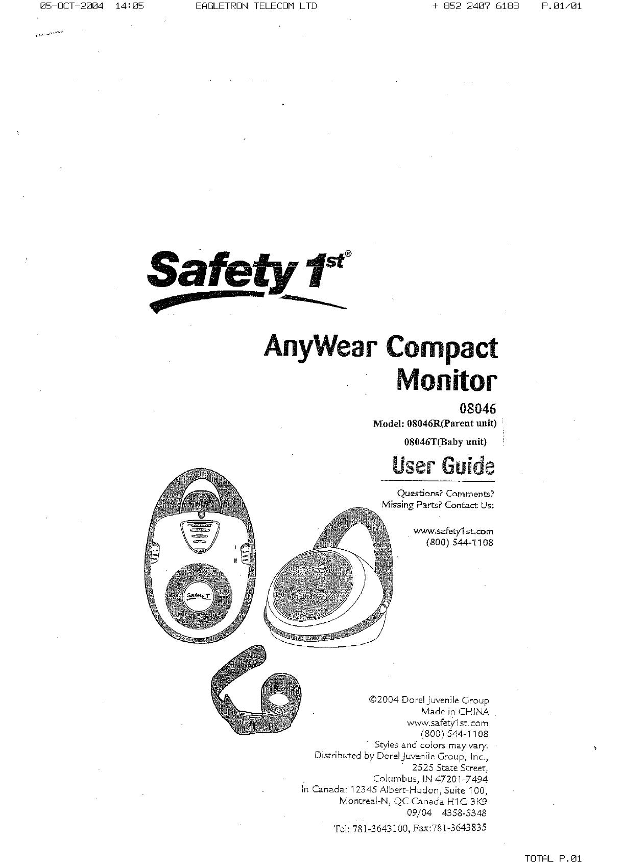 Dorel Juvenile Group 08046T 900MHz Baby Monitor (Transmtter) User Manual Internet FAX