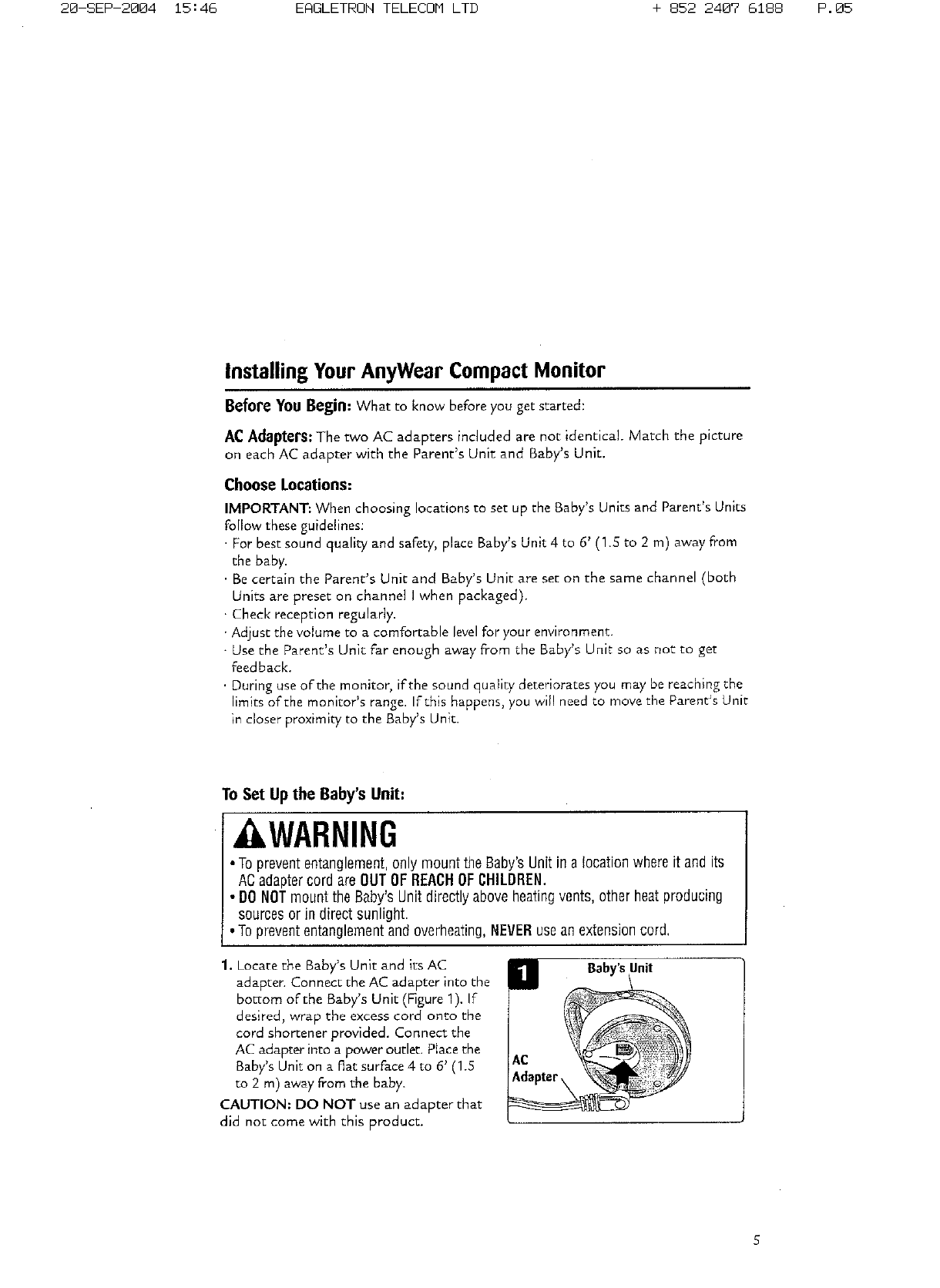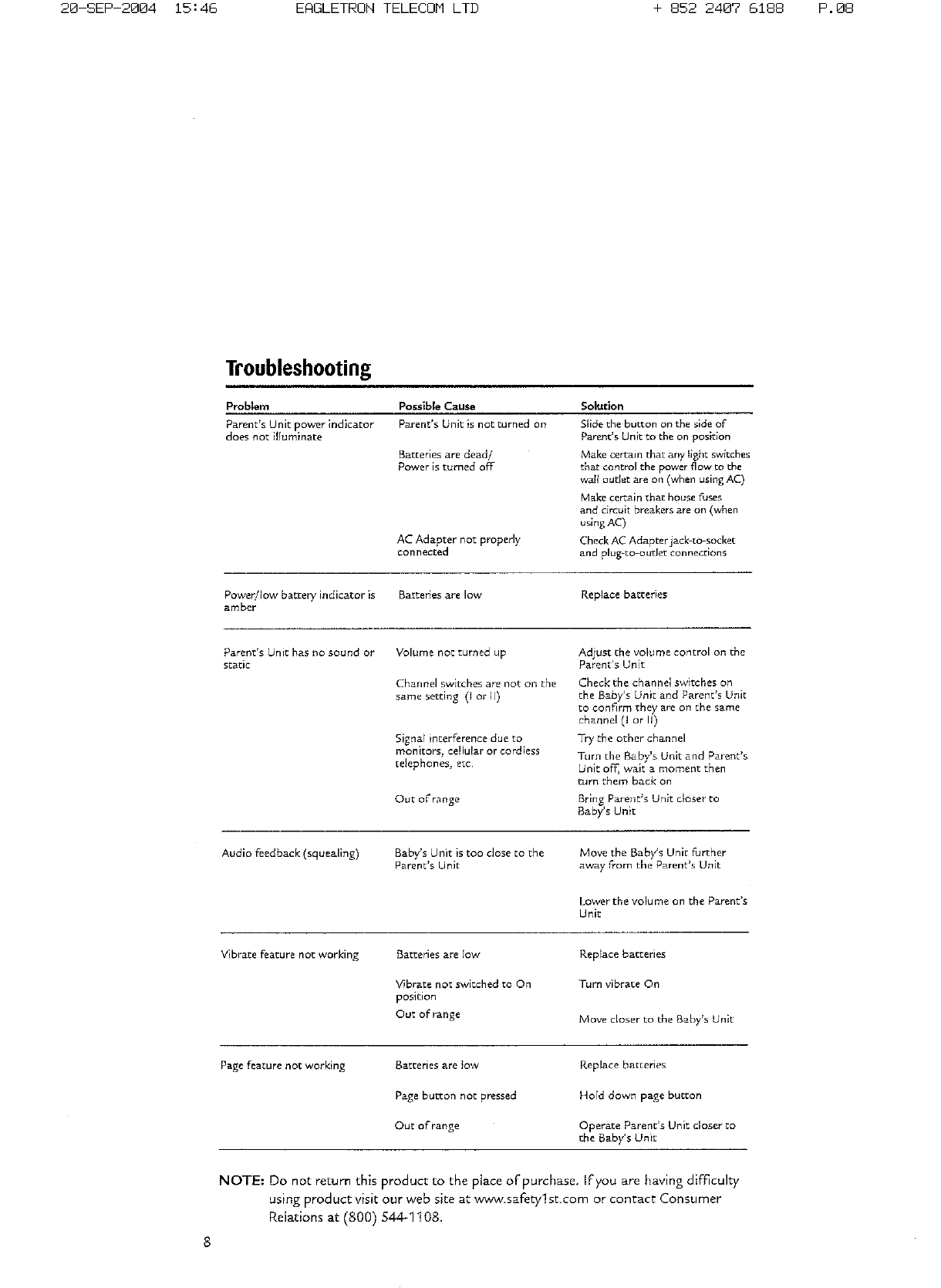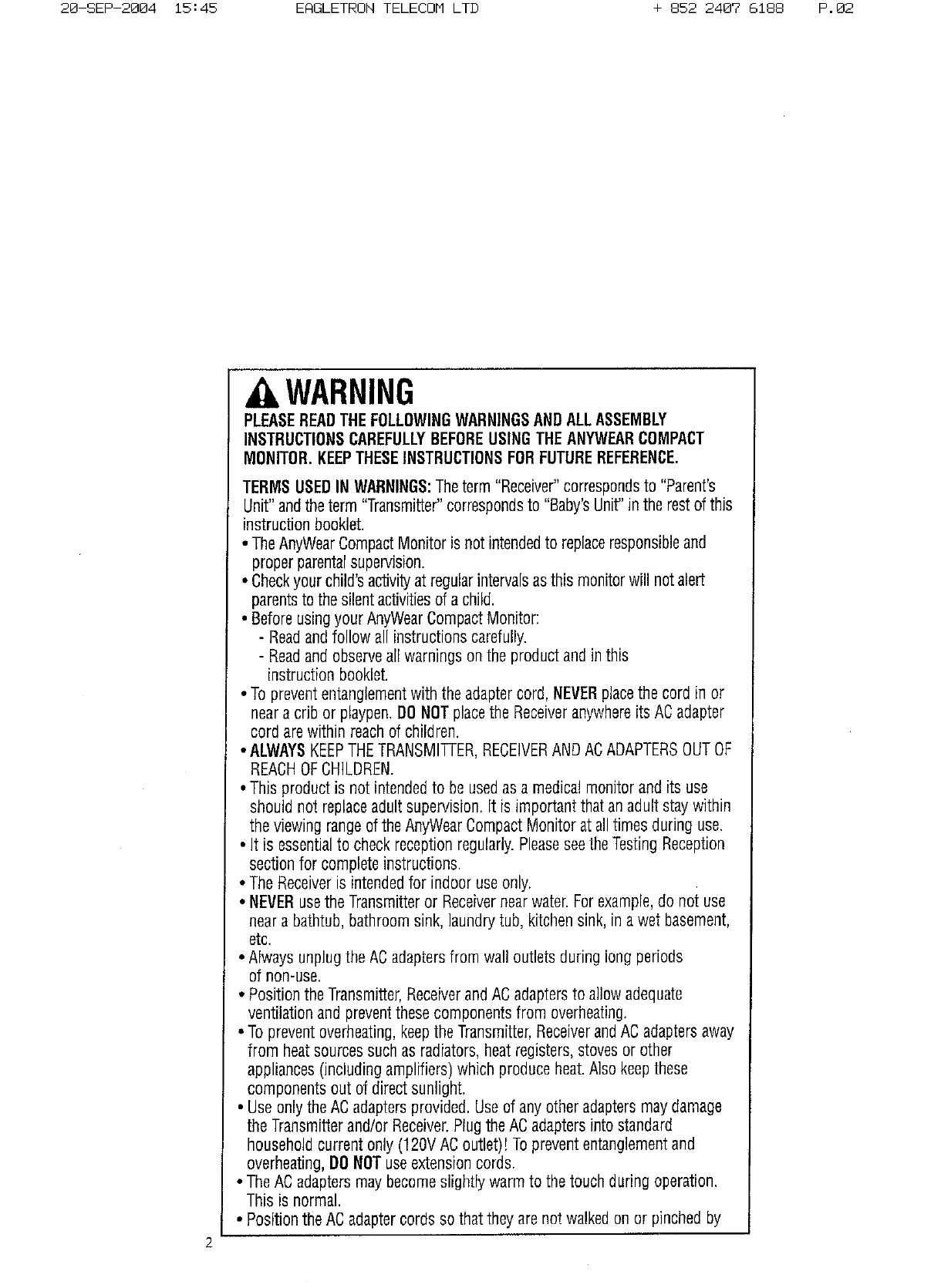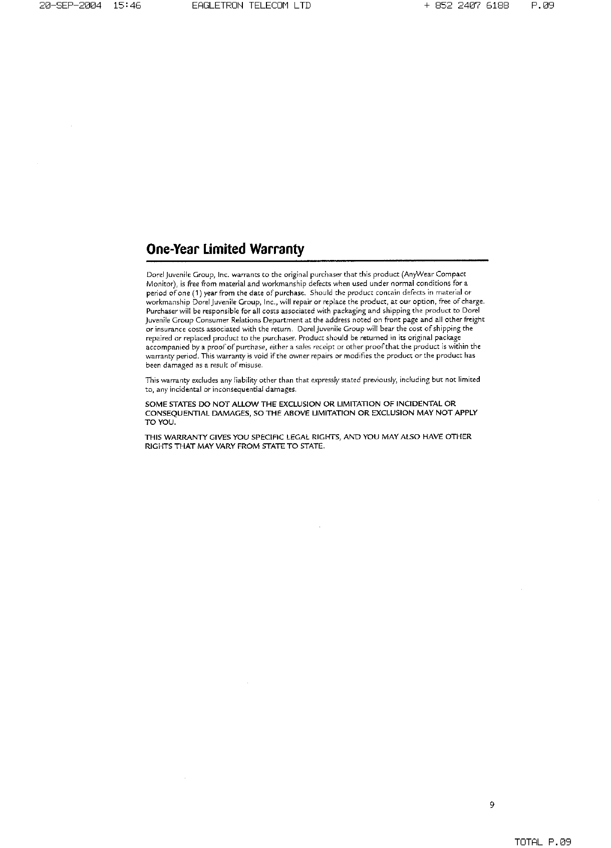Dorel Juvenile Group 08046T 900MHz Baby Monitor (Transmtter) User Manual Internet FAX
