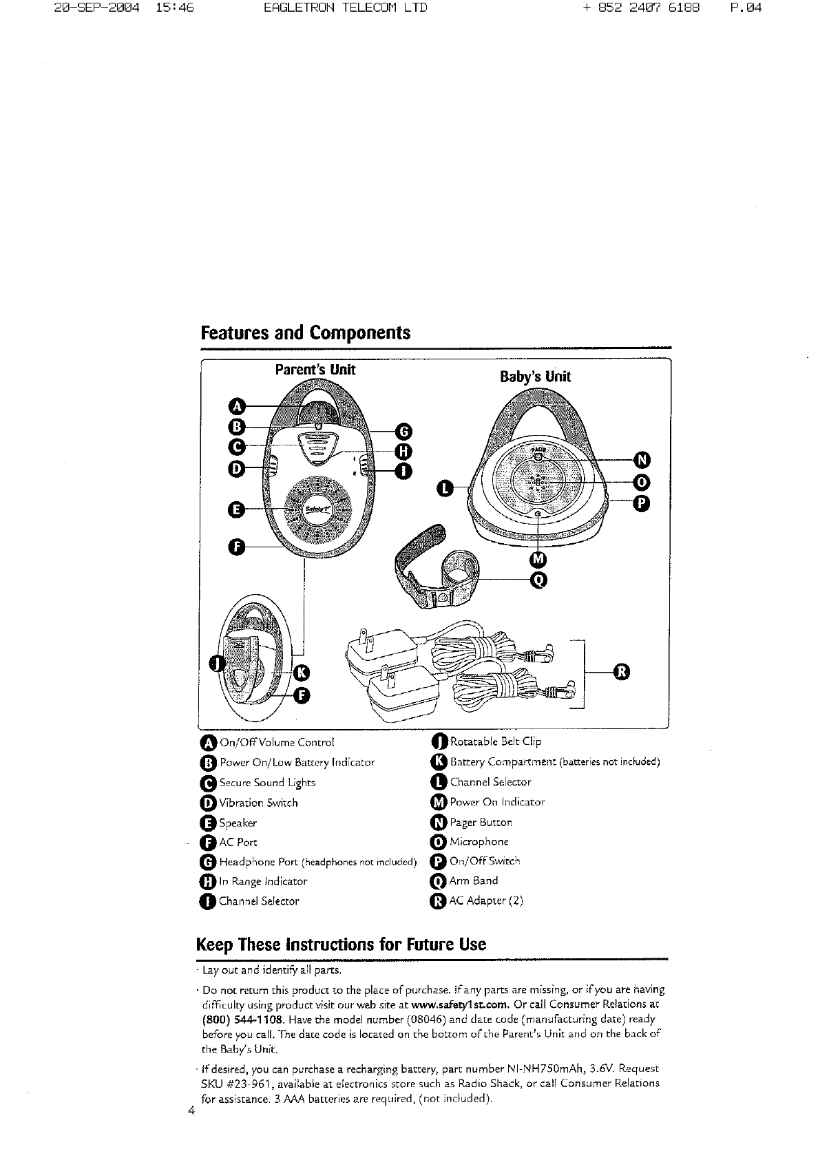 Dorel Juvenile Group 900MHz Baby Monitor (Transmtter) Internet FAX