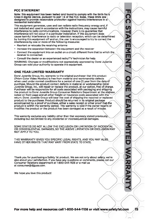 Dorel Juvenile Group 2.4GHz FHSS Parent Unit 08096 MonitorKO R6 indd