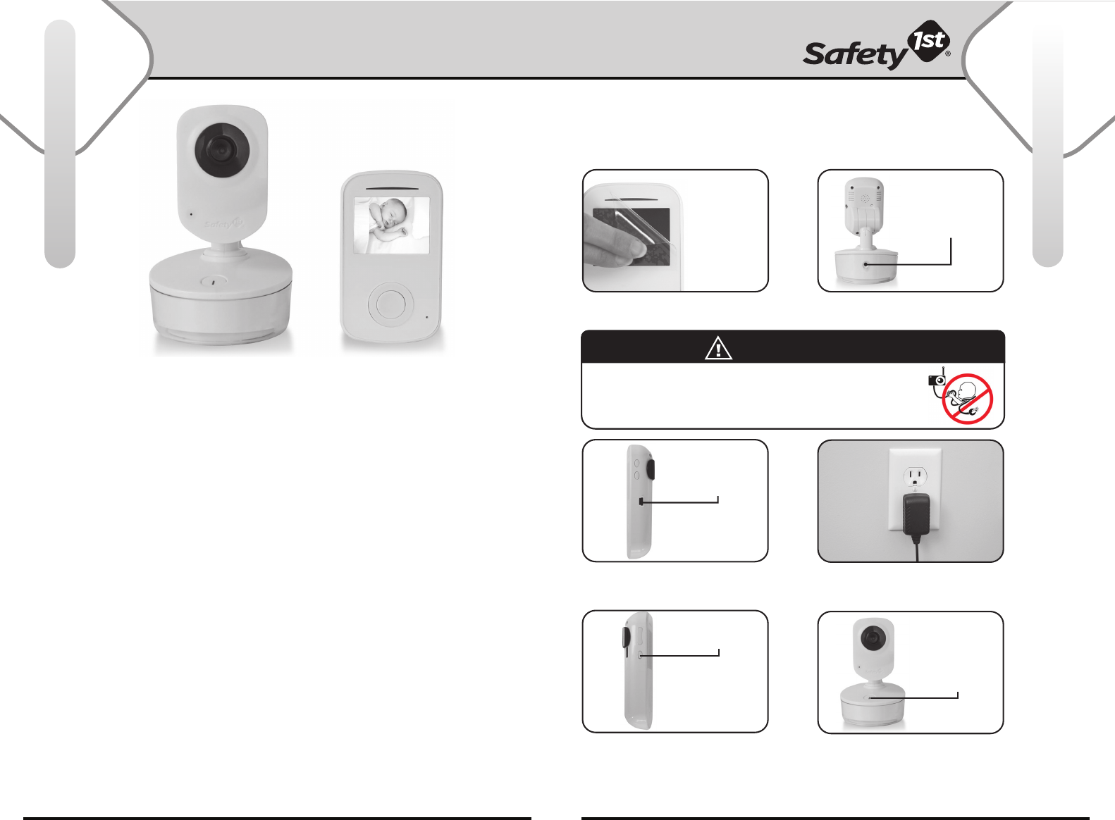 - Make sure protective cling is removed from front of Baby Unit and Parent Unit