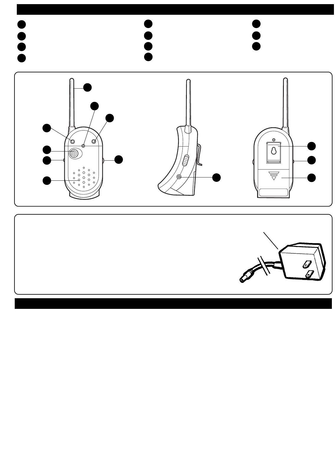 AC POWER SOURCE: The Nursery Monitor should be connected only to the AC Adapters supplied with the unit.