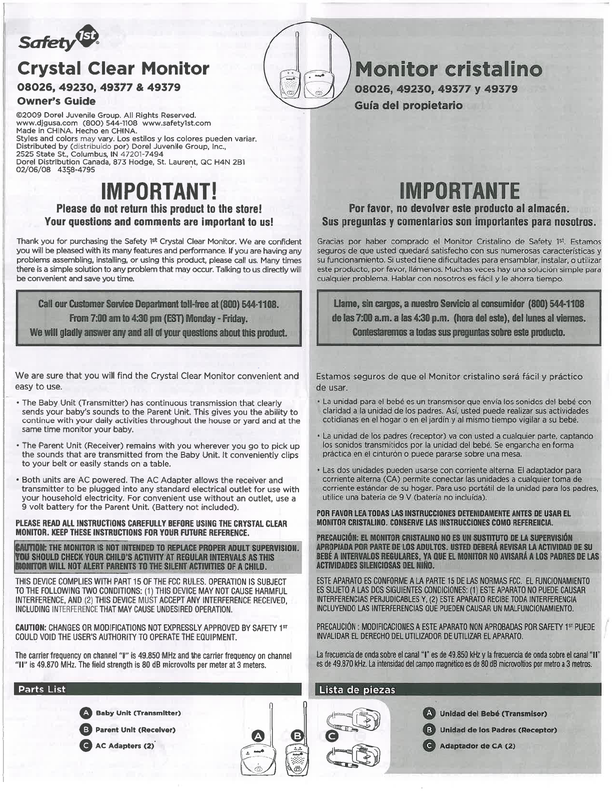 Dorel Juvenile Group 49379T BABY MONITOR User Manual
