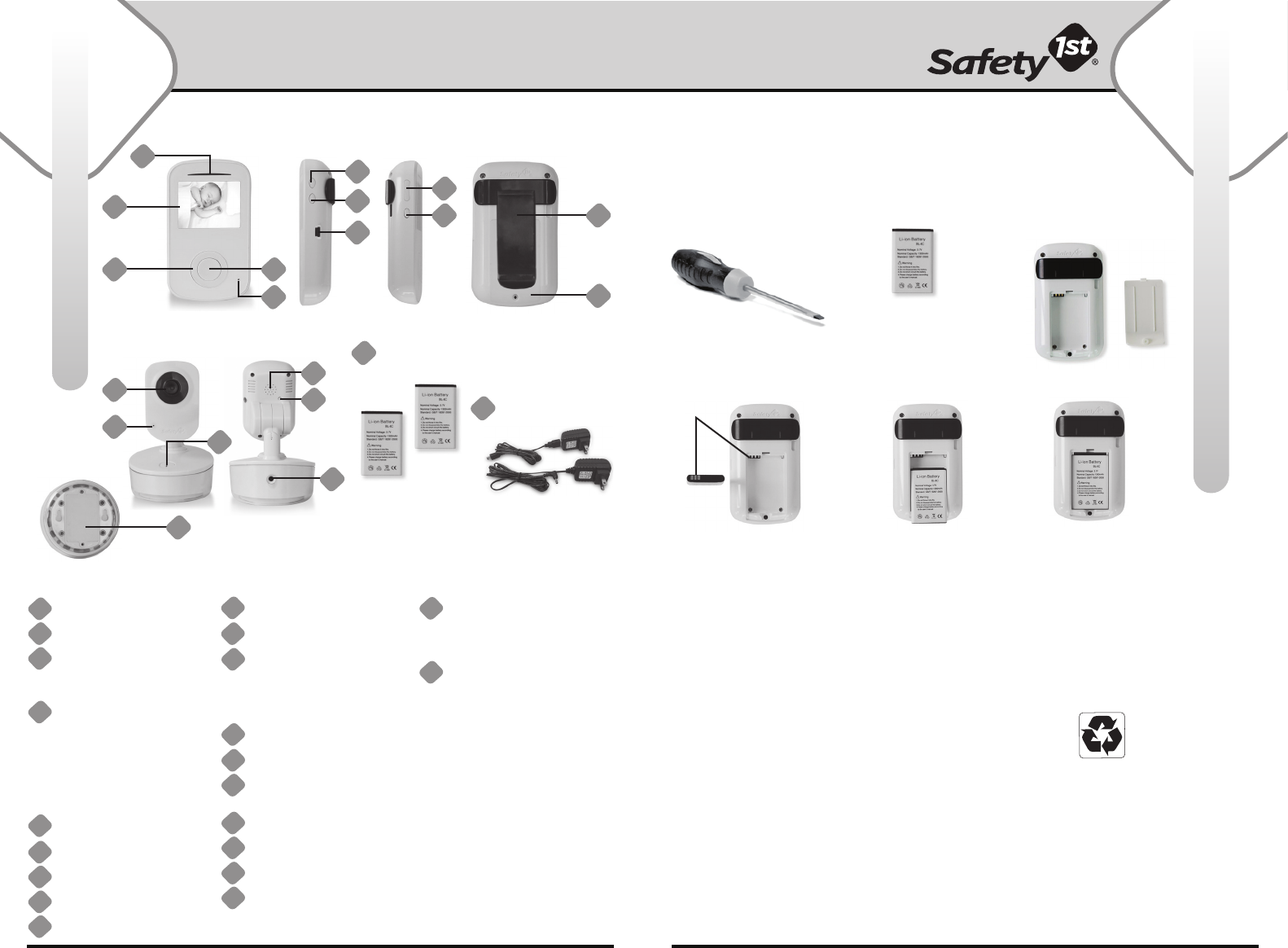For Video Parent Unit and Baby Unit, recharge battery using AC adapter