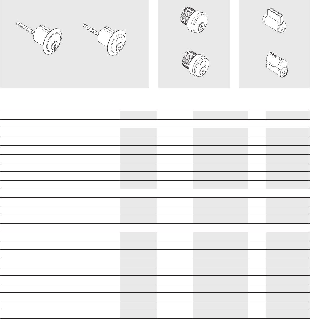 Cylinders for 9600/F9600 Concealed Vertical Rod, 9700/F9700 Rim, and 9800/F9800 Surface Vertical Rod Devices