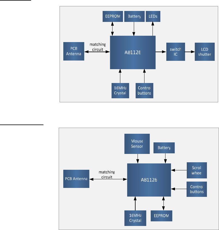 There are two typical applications of AB1126. One is 3D Glasses, and the other is wireless mouse. The
