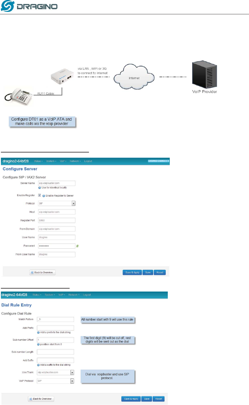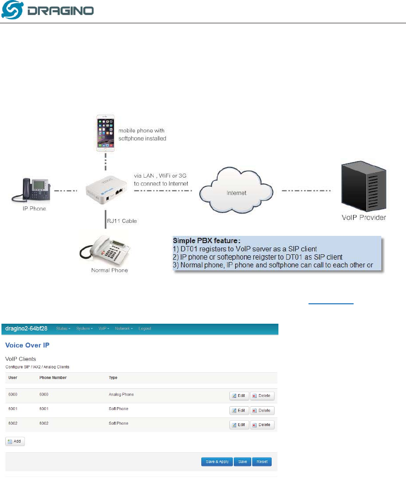 In this application, DT01 connect to SIP provider like section 5.1. Besides that, DT01 also acts as a