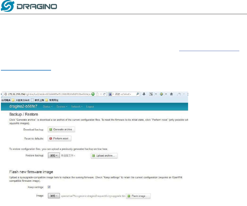Goto Web UI Æ System Æ Flash Firmware: Choose the xxx--squashfs-sysupgrade.bin image and