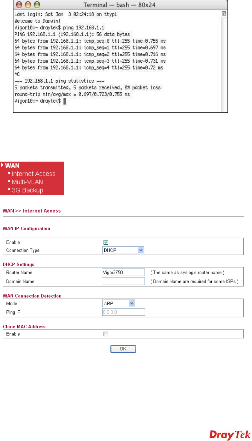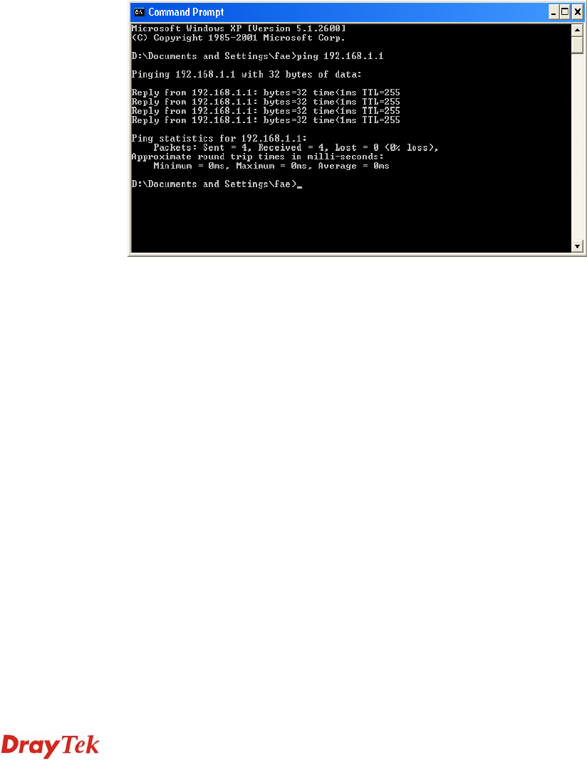 6. Make sure the computer can ping Vigor's LAN IP. ( Default IP is 192.168.1.1 )