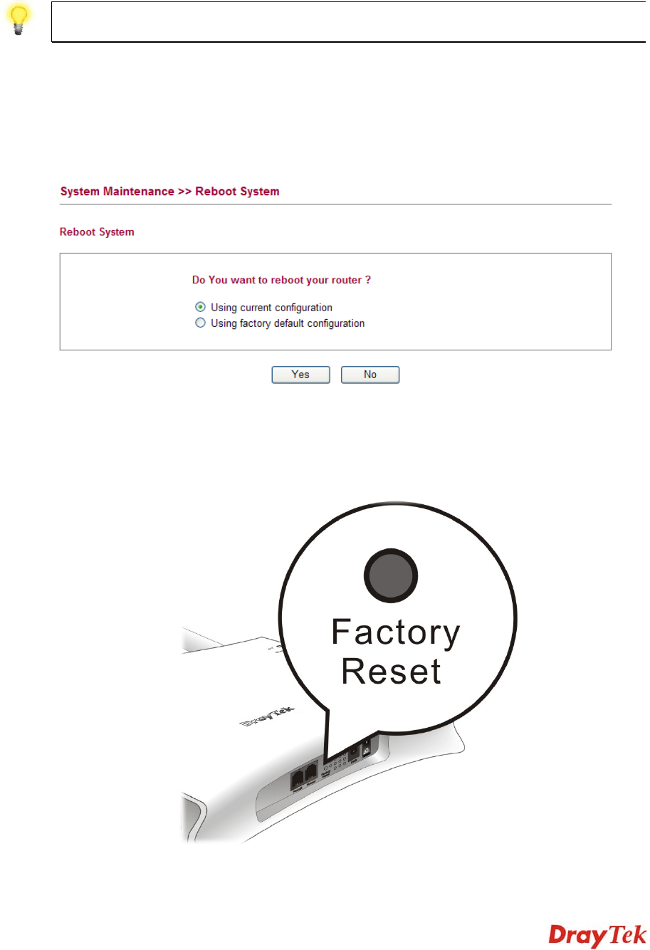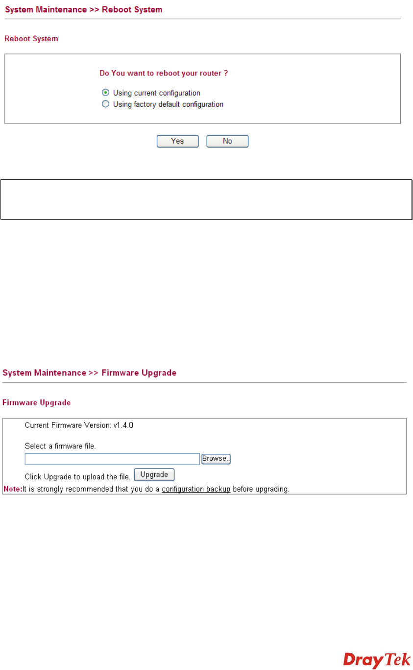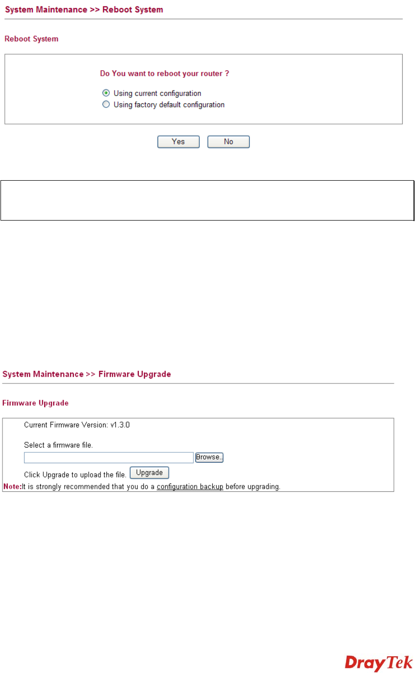 Go to System Maintenance and choose Reboot System on the web page. The following