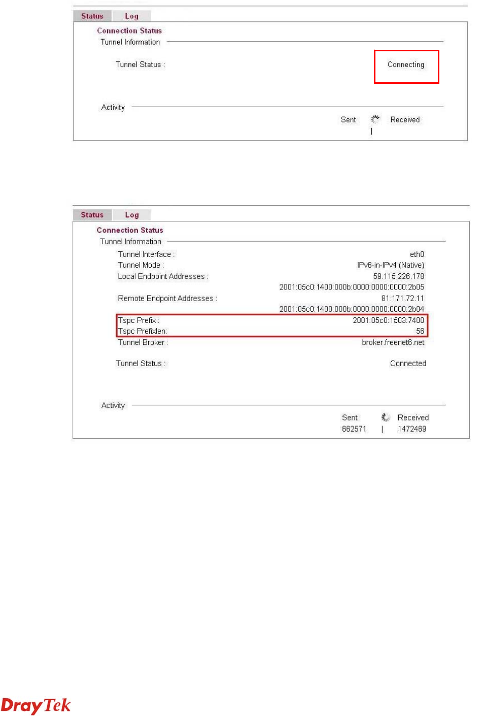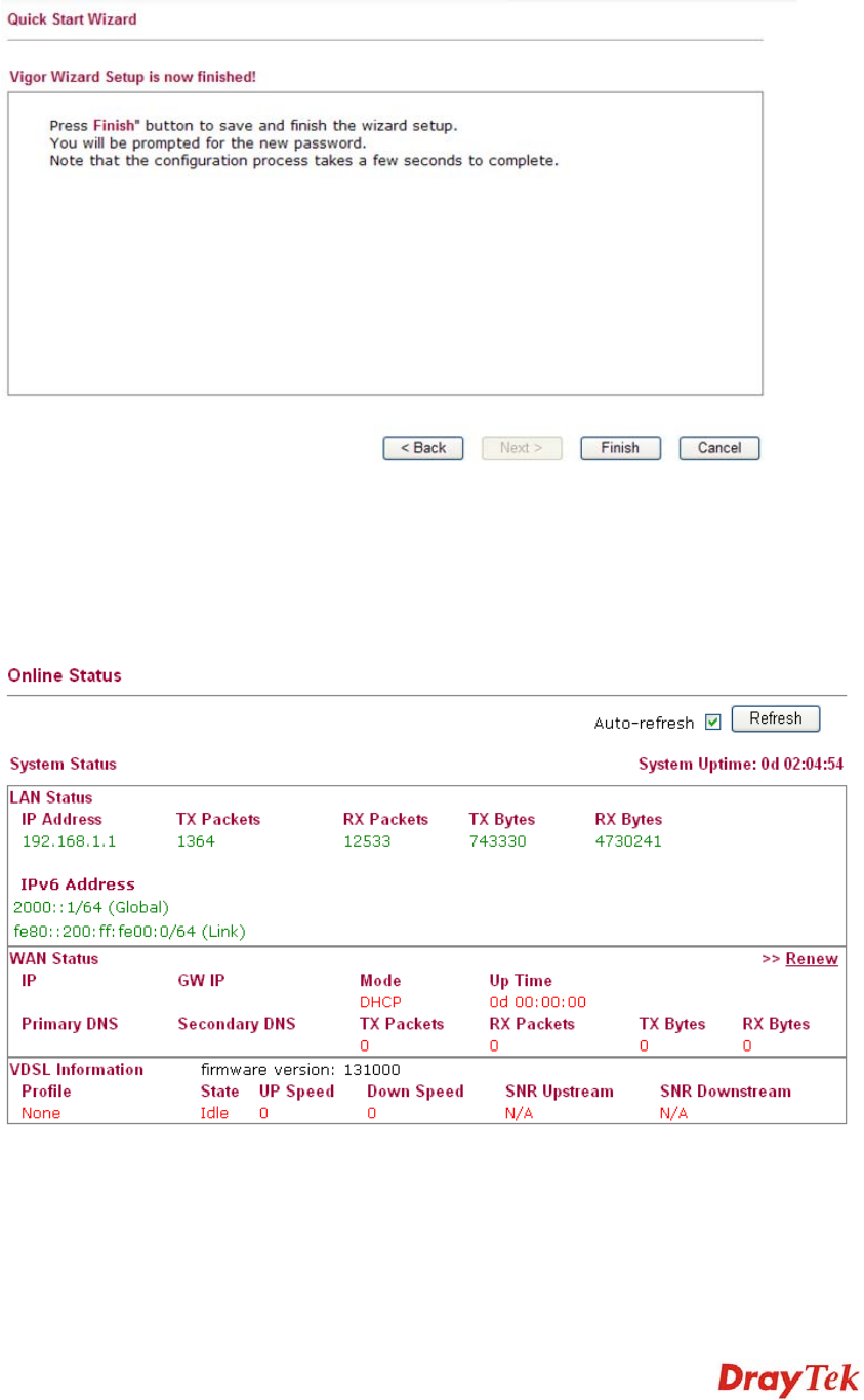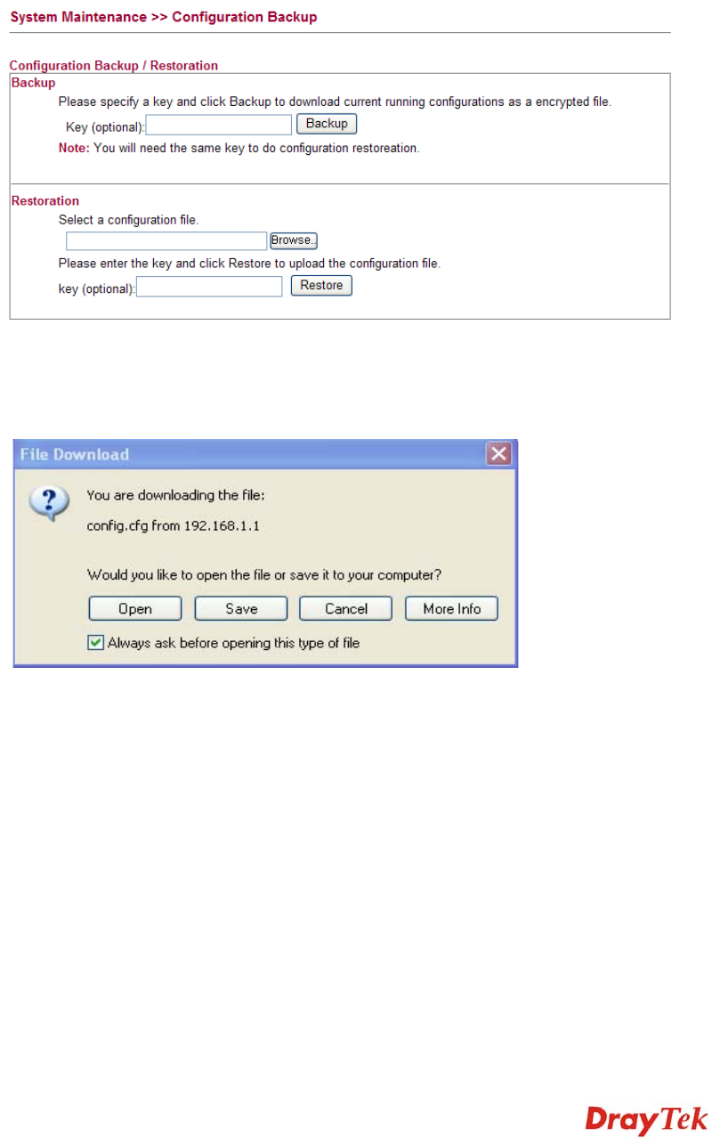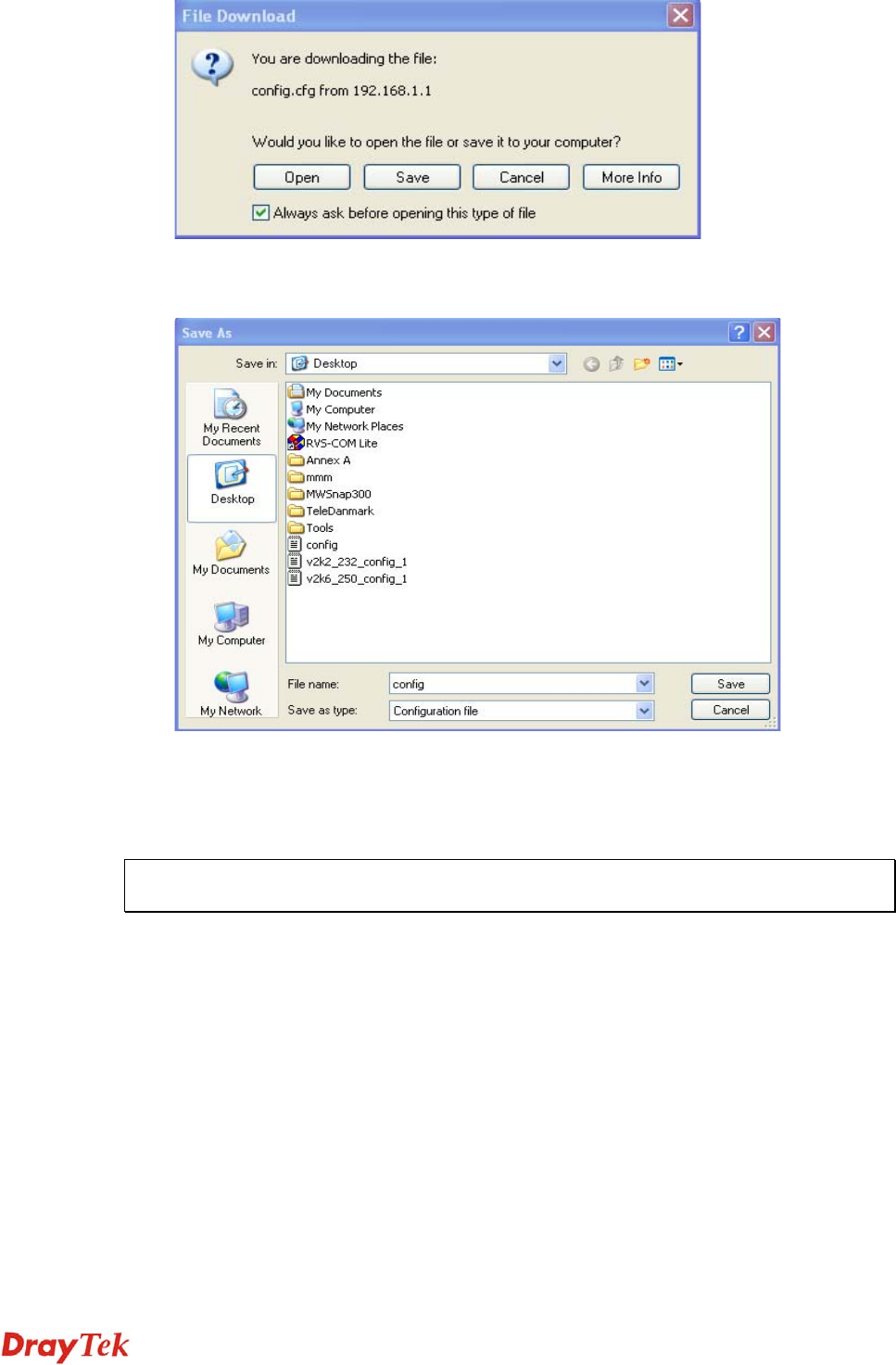 between the computer and the Vigor is active or not. And, if the message of Incorrect/No file