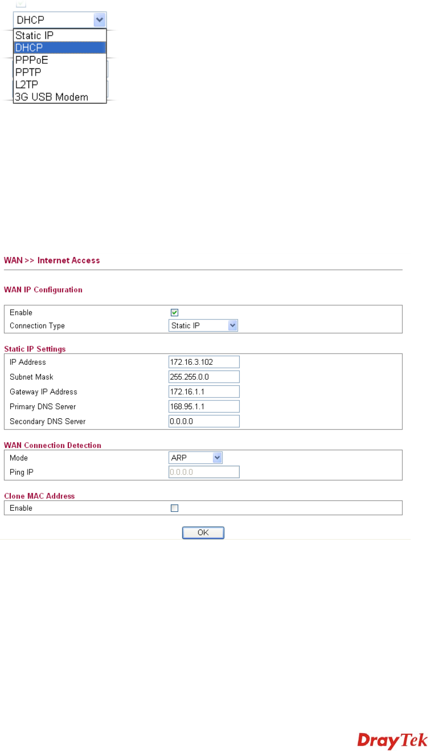 Use the Connection Type drop down list to choose Static IP/DHCP/PPPoE/PPTP/L2TP/3G