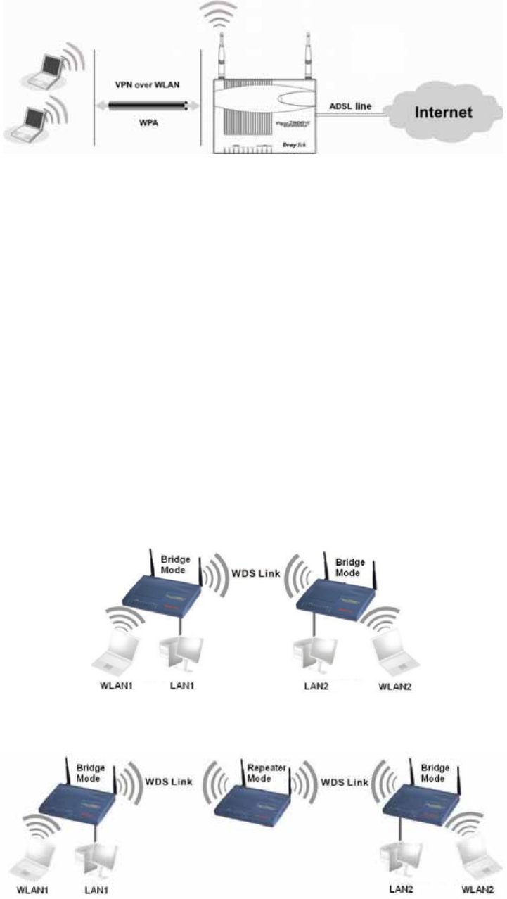 its LAN/WLAN to either peer Bridge Mode
