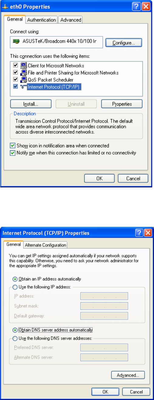 4. Select Obtain an IP address automatically and Obtain DNS