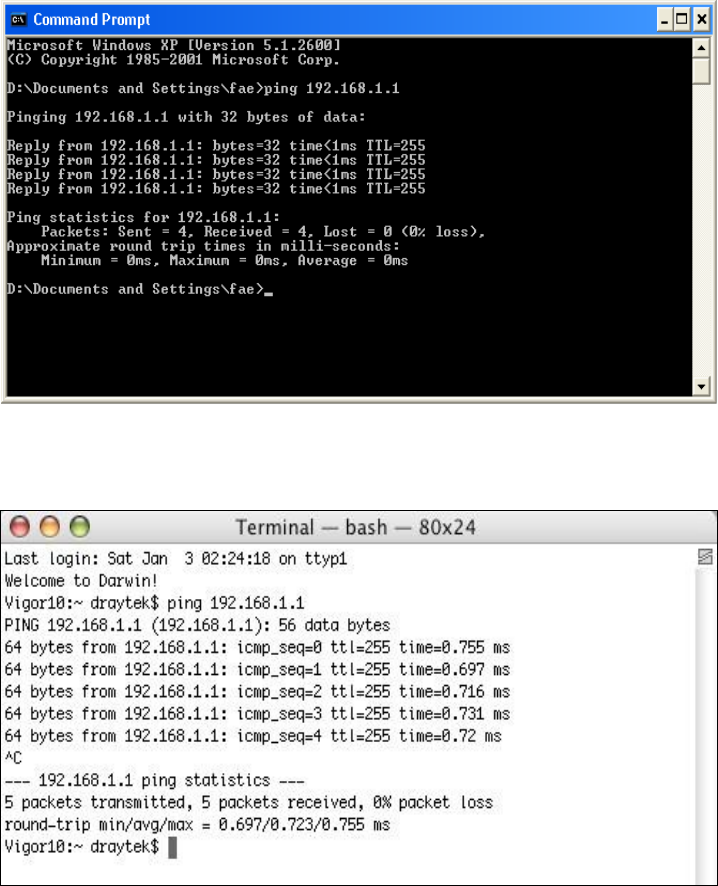 3. Type ping 192.168.1.1 and press [Enter]