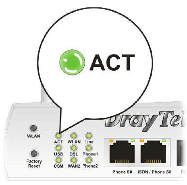 While the router is running (ACT LED blinking), press the RST button and hold for more