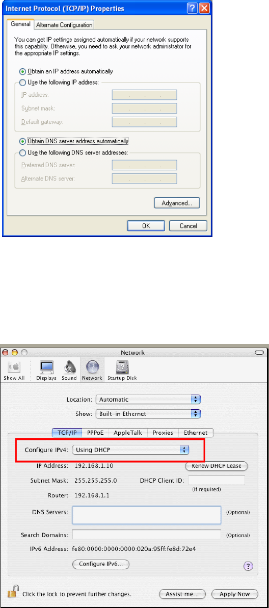 4. Select Obtain an IP address automatically and Obtain DNS server address