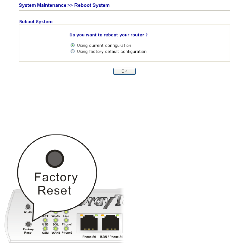 Go to System Maintenance and choose Reboot System on the web page. The following