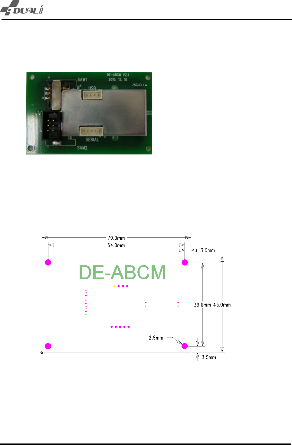 - DE-ABCM (RF module) itself contains all circuits include antenna, SAMs and connectors.